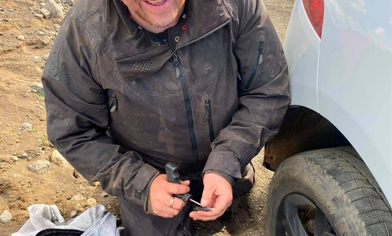 Þeir félagar lentu ekki bara í töf með bilað fjórhjól á Laugarvatni, því þeim að óvörum óku þeir fram á rafmagnsbíl á miðjum Sprengisandi sem hafði skemmt hjólbarða. Það ævintýri tafði þá um klukkustund við að reyna að aðstoða þann ökumann sem vildi freista þess að komast yfir hálendið á rafmagnsbílnum.