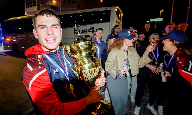 „Ég er ekki farin neitt þó svo að ég sé ólétt. Það var gaman að fá að lyfta bikarnum líka, ég er búin að vera á öllum æfingum og leikjum síðan ég þurfti að hætta, við erum saman í þessu. Þetta er öðruvísi hlutverk, skemmtilegt en ég hlakka samt mikið til að snúa aftur á parketið. Ég hafði góða tilfinningu fyrir þessum leik, við þurftum að fókusera á það sem við gátum stjórnað og ef það myndi takast voru sigurlíkur okkar góðar, sem kom á daginn. Við vorum náttúrulega búnar að tapa fyrir þeim einu sinni í vetur svo það var ekki erfitt að mótivera sig fyrir þennan leik fyrir framan alla þessa áhorfendur,“ sagði Katla Rún Garðarsdóttir, fyrirliði liðsins, en var í öðruvísi hlutverki að þessu sinni.