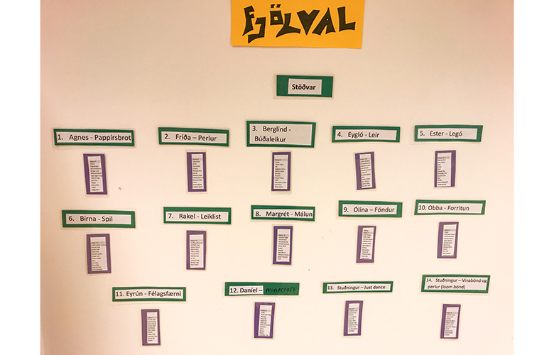 Á yngsta og miðstigi var tekið upp á að bjóða upp á val einu sinni í viku í tvær kennslustundir. Lagt var upp með að kennarar byðu upp á fjölbreyttar stöðvar sem allir nemendur gætu prufað og svo yrði valið meira í næsta hring.