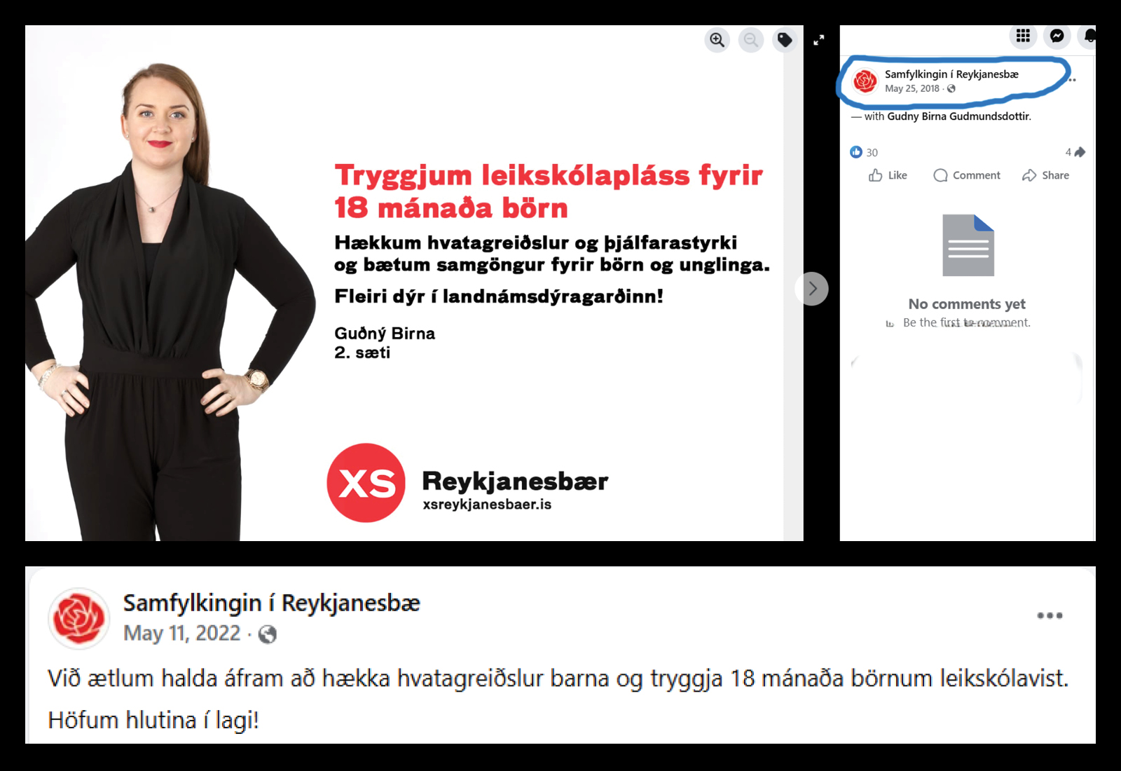 Árið 2018 var haft eftir núverandi oddvita Samfylkingarinnar í áróðursplaggi flokksins: „Tryggjum leikskólapláss fyrir 18 mánaða börn.“