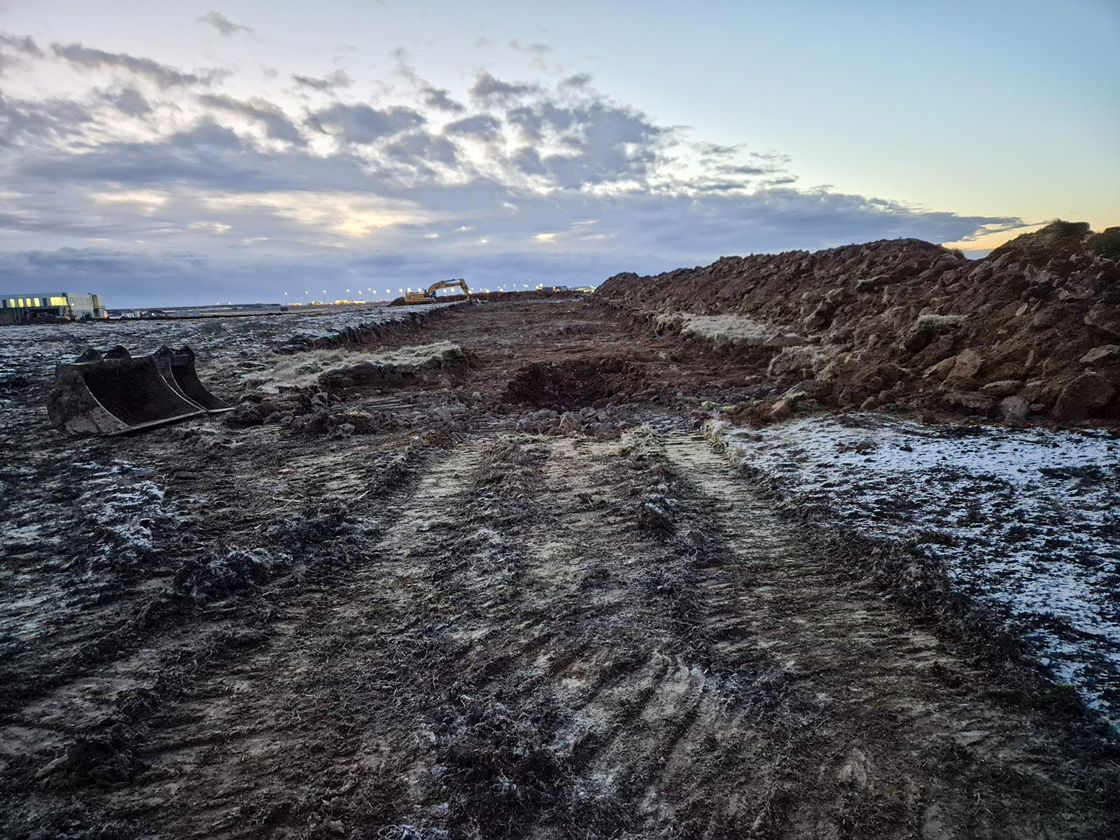 Er nema von að spurt sé. Stórvirkar vinnuvélar eru þegar mættar á svæðið og þegar búkolla sjálf er komin líka er ljóst að hér stefnir í stórframkvæmdir.