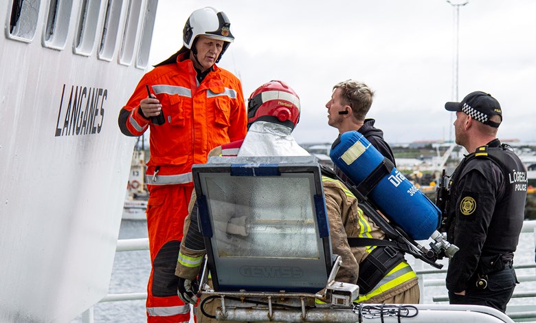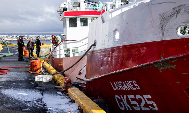 Hólmgrímur Sigvaldason, eigandi Langaness, og Sigvaldi Hólmgrímsson, skipstjóri, liðsinntu slökkviliðsmönnum í aðgerðum þeirra en í myndasafni sem fylgir fréttinni hér fyrir neðan má sjá ljósmyndir af vettvangi.