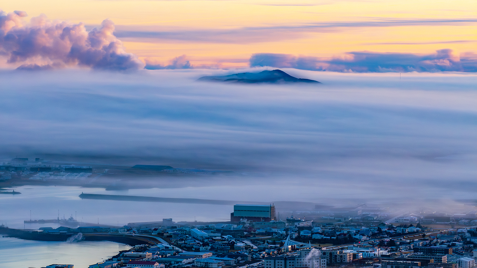 Það hefur verið þykk þoka í Reykjanesbæ í allan dag en núna síðustu mínútur hefur aðeins rofað til og létt á þokunni. Ljósmyndari vf.is smellti af nokkrum myndum með útsýni yfir Reykjanesbæ. Þarna má einnig sjá hvernig Vogastapinn er baðaður í þoku og hvernig hitinn frá hrauninu úr eldgosum á Sundhnúksgígaröðinni myndar bólstra. Þá má sjá Þorbjörn þeirra Grindvíkinga stinga sér upp úr þokunni og gufuna frá Svartsengi stíga til himins.