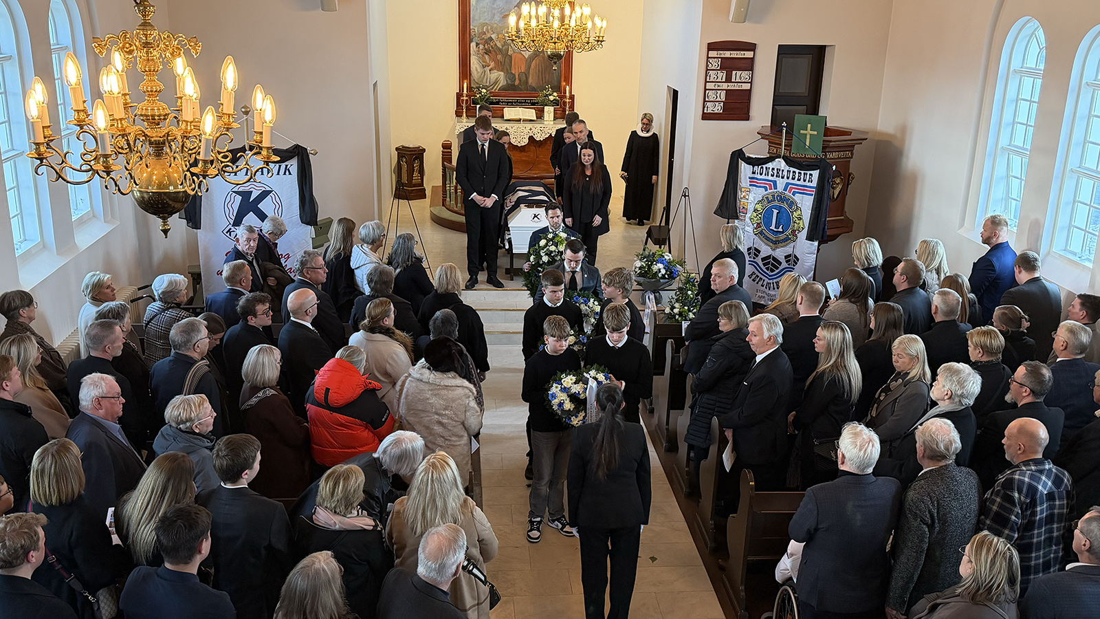 Fjölmenni var við útför Magnúsar Haraldssonar frá Keflavíkurkirkju í dag. Magnús lést 17. janúar, 83 ára að aldri.