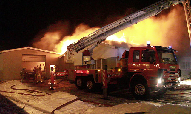 Allt tiltækt slökkvilið Brunavarna Suðurnesja glímir nú við mikinn eld í iðnaðarhúsnæði við Bolafót í Njarðvík. Húsið er alelda. Lögreglan á Suðurnesjum er einnig með fjölmennt lið á staðnum og þá hafa björgunarsveitarmenn úr Björgunarsveitinni Suðurnes aðstoðað á vettvangi.??Tilkynnt var um eldinn á tólfta tímanum í kvöld en í húsinu eru m.a. rafmagnsverkstæði og bílaþvottastöð. Eldurinn hefur verið mestur á rafmagnsverkstæðinu. Þaðan hefur verið reynt að bjarga verðmætum og hafa slökkviliðsmenn bæði komið með sportbát og hjólhýsi út úr brennandi húsinu. Þá var fólksbíl bjargað út úr þvottastöðinni en slökkviliðsmönnum tókst að verja hana að mestu.??Þegar þessi frétt er skrifuð kl. 01 í nótt stendur slökkvistarf ennþá yfir en aðstæður á brunastað eru erfiðar og bálhvass vindur. Reykur stendur þó frá byggð.??Fleiri myndir og myndband væntanlegt með morgninum. ???Víkurfréttamyndir: Hilmar Bragi???