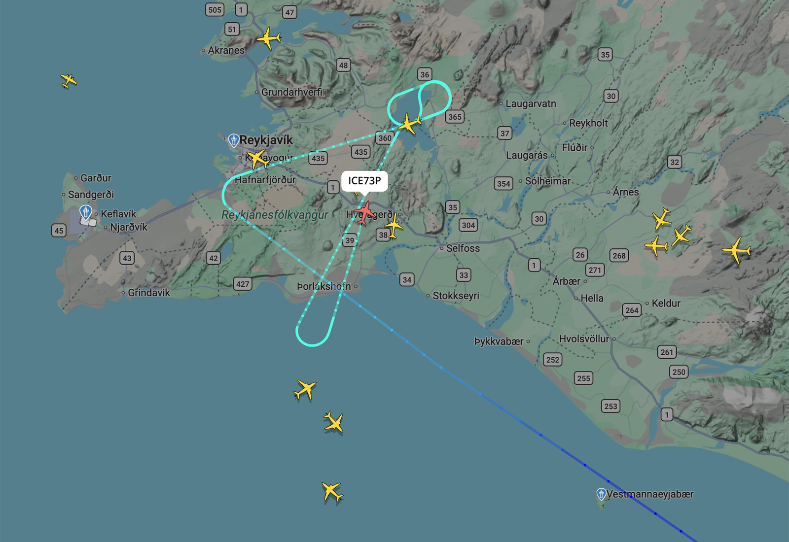 Fylgjast má með vélunum á Flightradar24 þar sem vélarnar teikna upp flugferla sína.