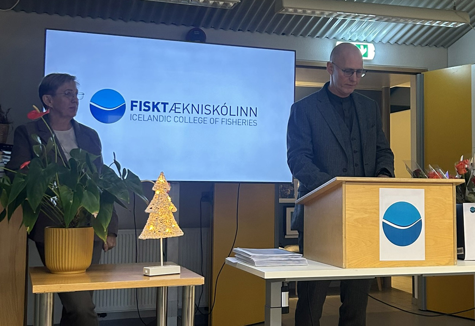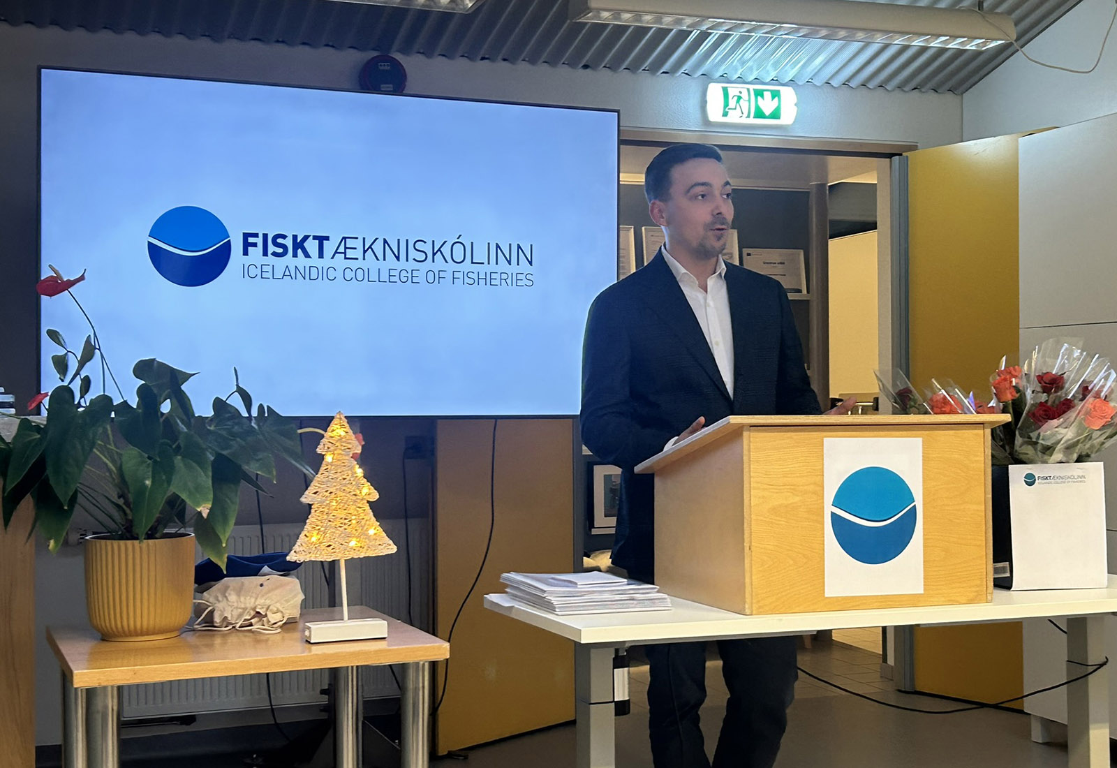 Pálmi Hafþór Ingólfsson, verkefnastjóri fræðslu og heilbrigðis hjá Brim hf. Hélt ræðu, en Brim er eitt af fjölmörgum fyrirtækjum innan bláa hagkerfisins sem Fisktækniskólinn á í stöðugu og góðu samstarfi við varðandi menntun starfsfólks, fyrirtækjaþjónustu með fræðslumál almennt og vegna vinnustaðaheimsókna og vinnustaðanáms sem okkar nemendur stunda.