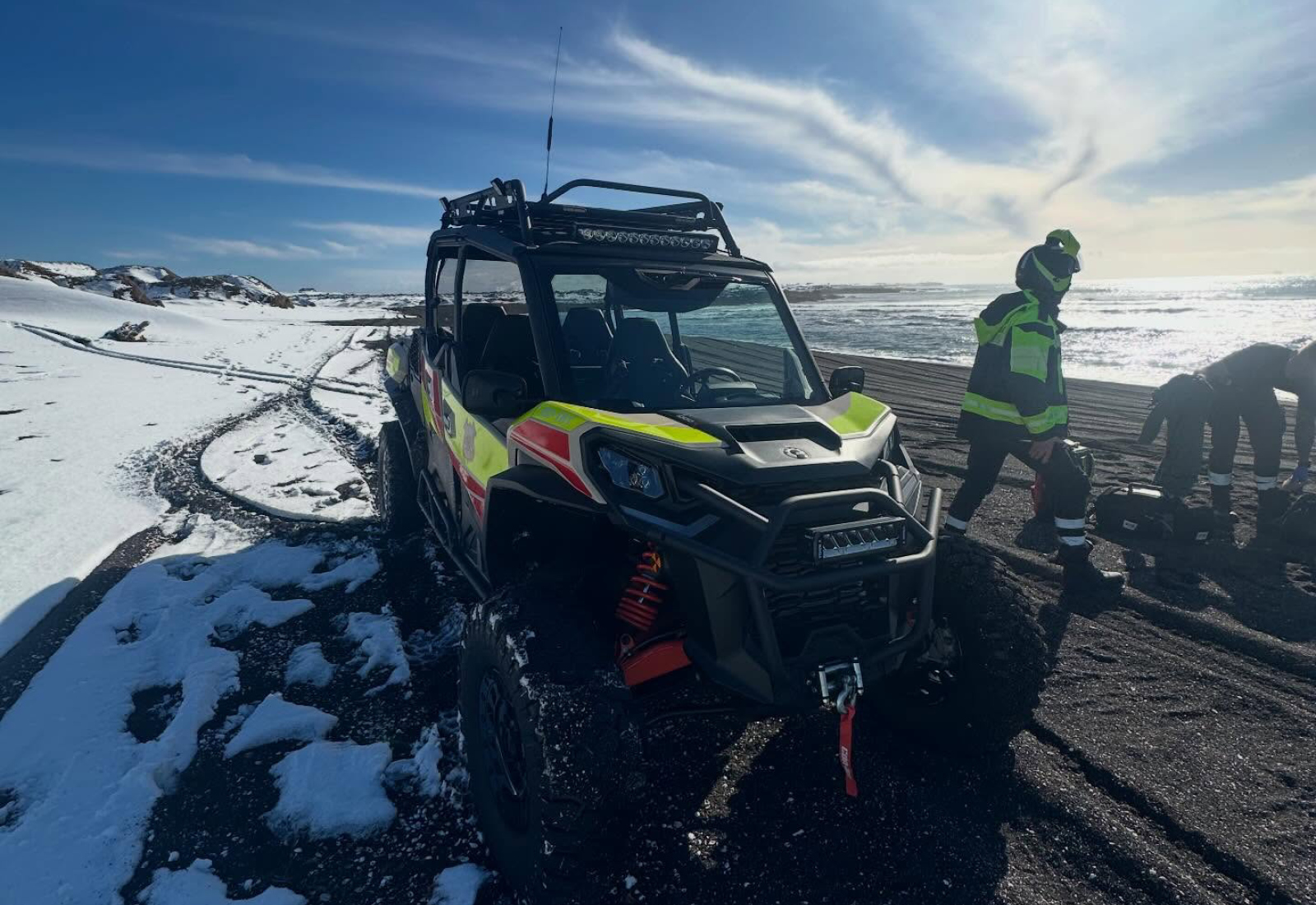 Í útkallinu sýndi bíllinn strax fjölhæfni sína en hann var nýttur til að ferja buggy-bíl slökkviliðsins á vettvang. Vegna erfiðra aðstæðna var buggy-bíllinn nauðsynlegur til að komast alla leið að sjúklingnum. Eftir að hlúð hafði verið að viðkomandi var hann fluttur til frekari skoðunar á Heilbrigðisstofnun Suðurnesja (HSS).