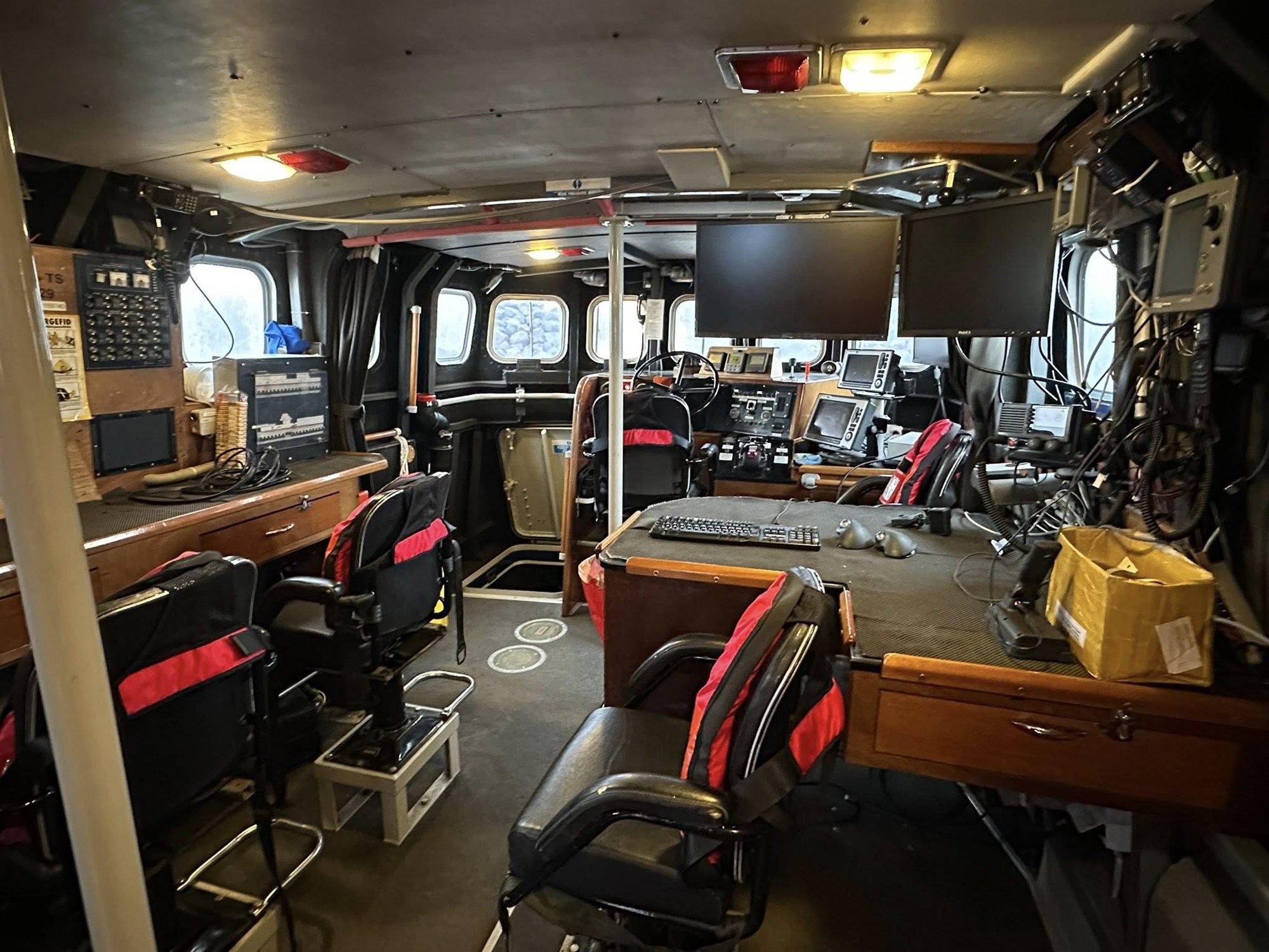 Áhöfnin brást þó skjótt við og tókst að græja bráðabirgðatengingu á inverter skipsins svo hægt væri að koma rafmagni aftur á og skrá skipið á „grænt“ að nýju. Samhliða viðgerðum var látið sverfa til stáls í snjókomunni og skipið þrifið hátt og lágt í tilefni vorhreingerningar.
