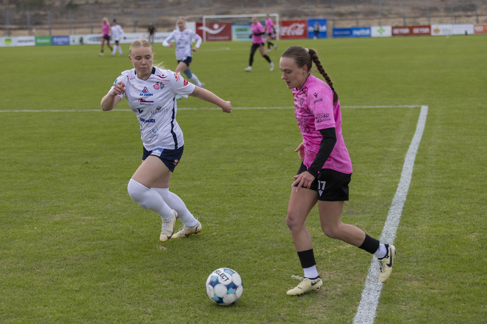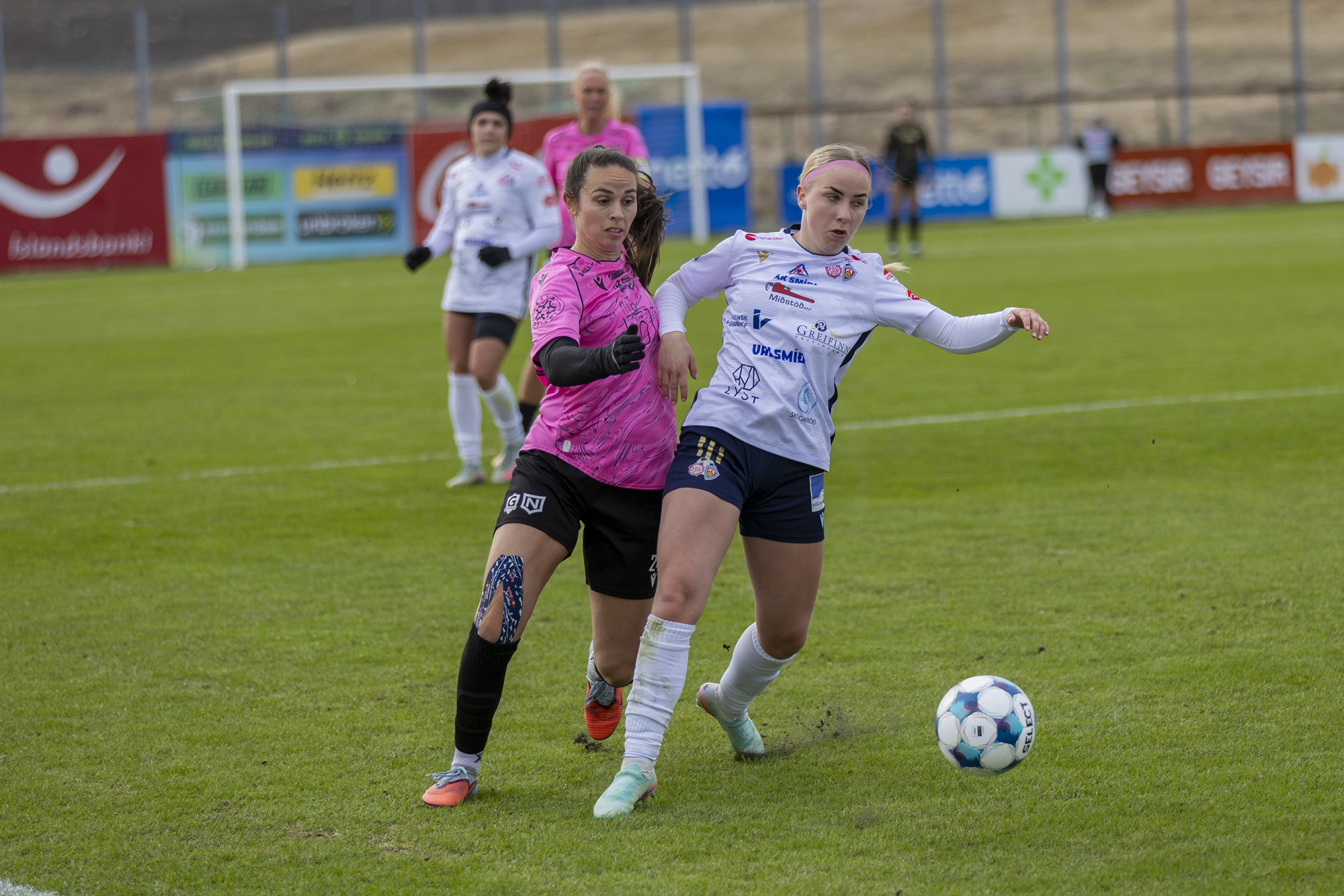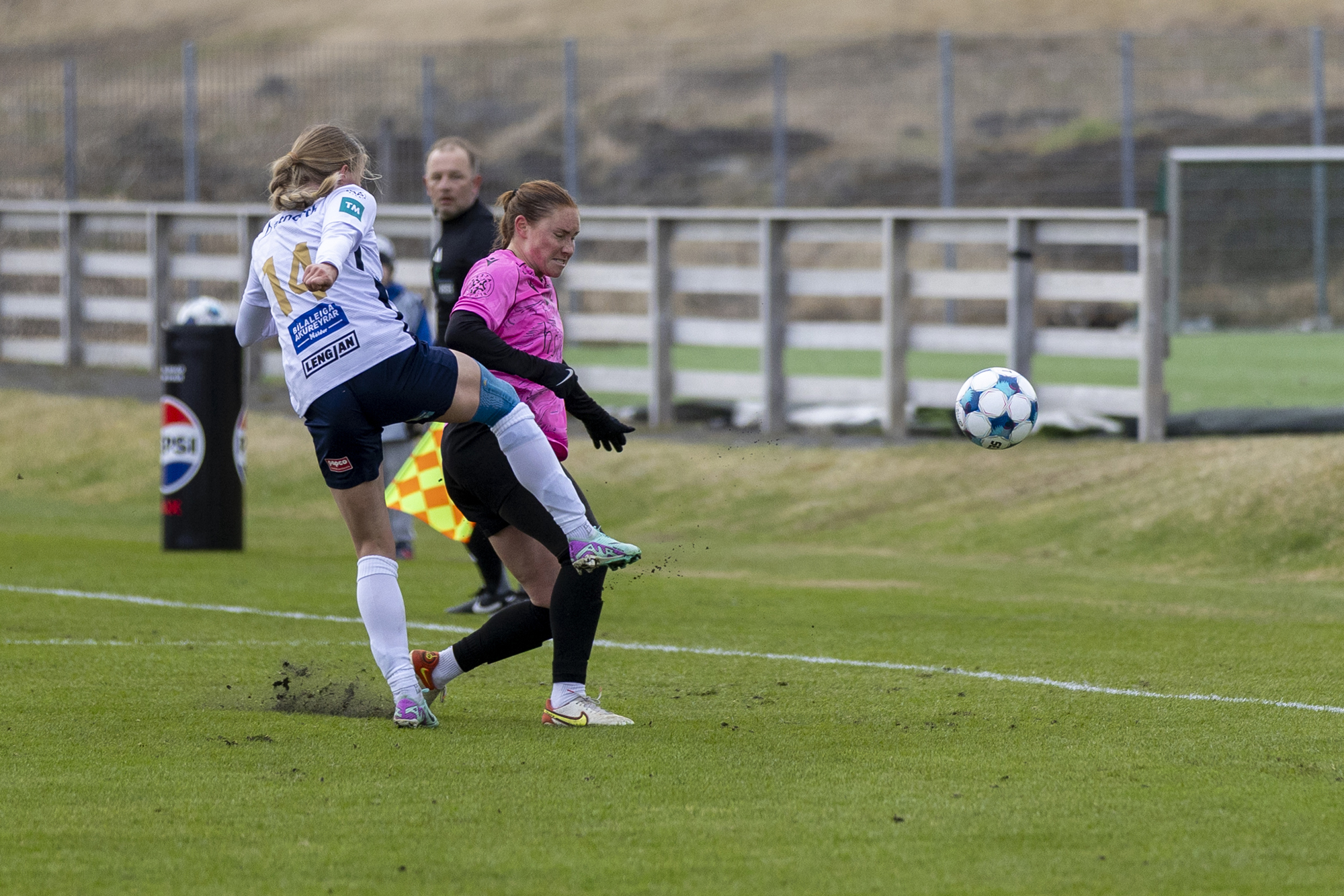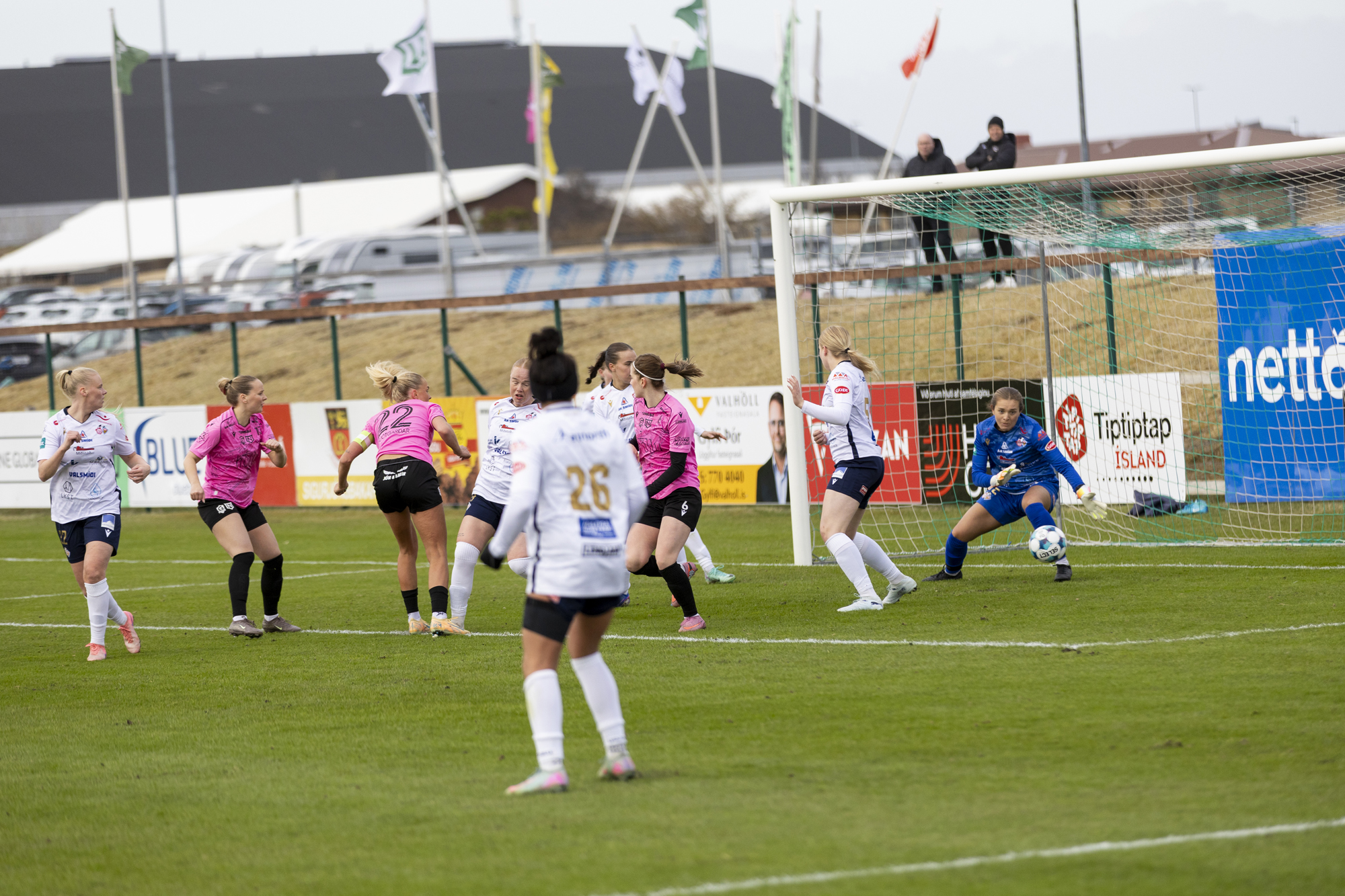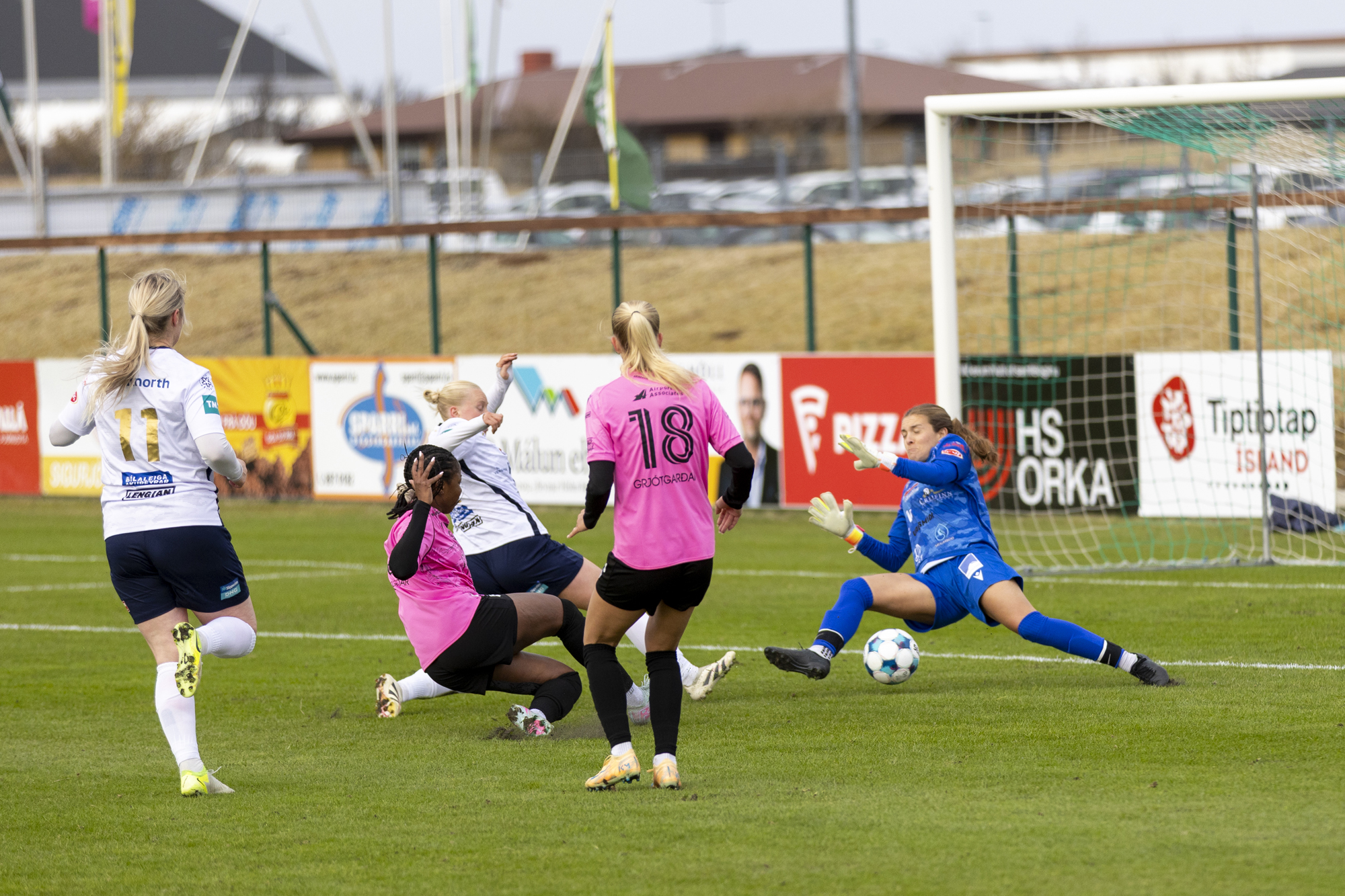 Gestirnir að norðan mættu af krafti og náðu forystunni strax á 10. mínútu. Þar var að verki Erin Flurey sem skoraði í autt markið eftir undirbúning Margrétar Árnadóttur. Þór/KA var sterkara liðið í fyrri hálfleik og fékk nokkur góð tækifæri til að bæta við, en Genevieve Jae Crenshaw stóð vaktina vel í marki heimakvenna.