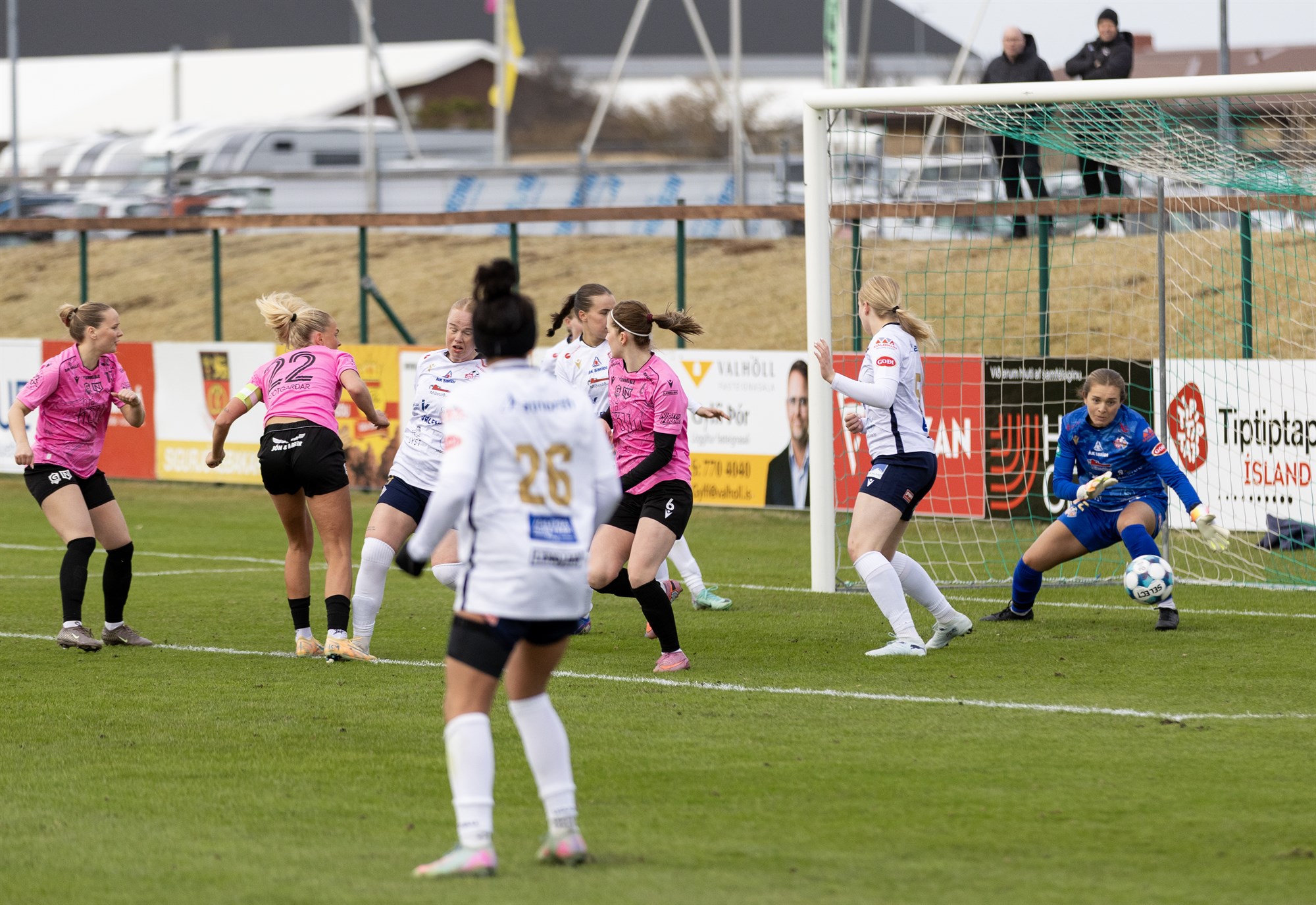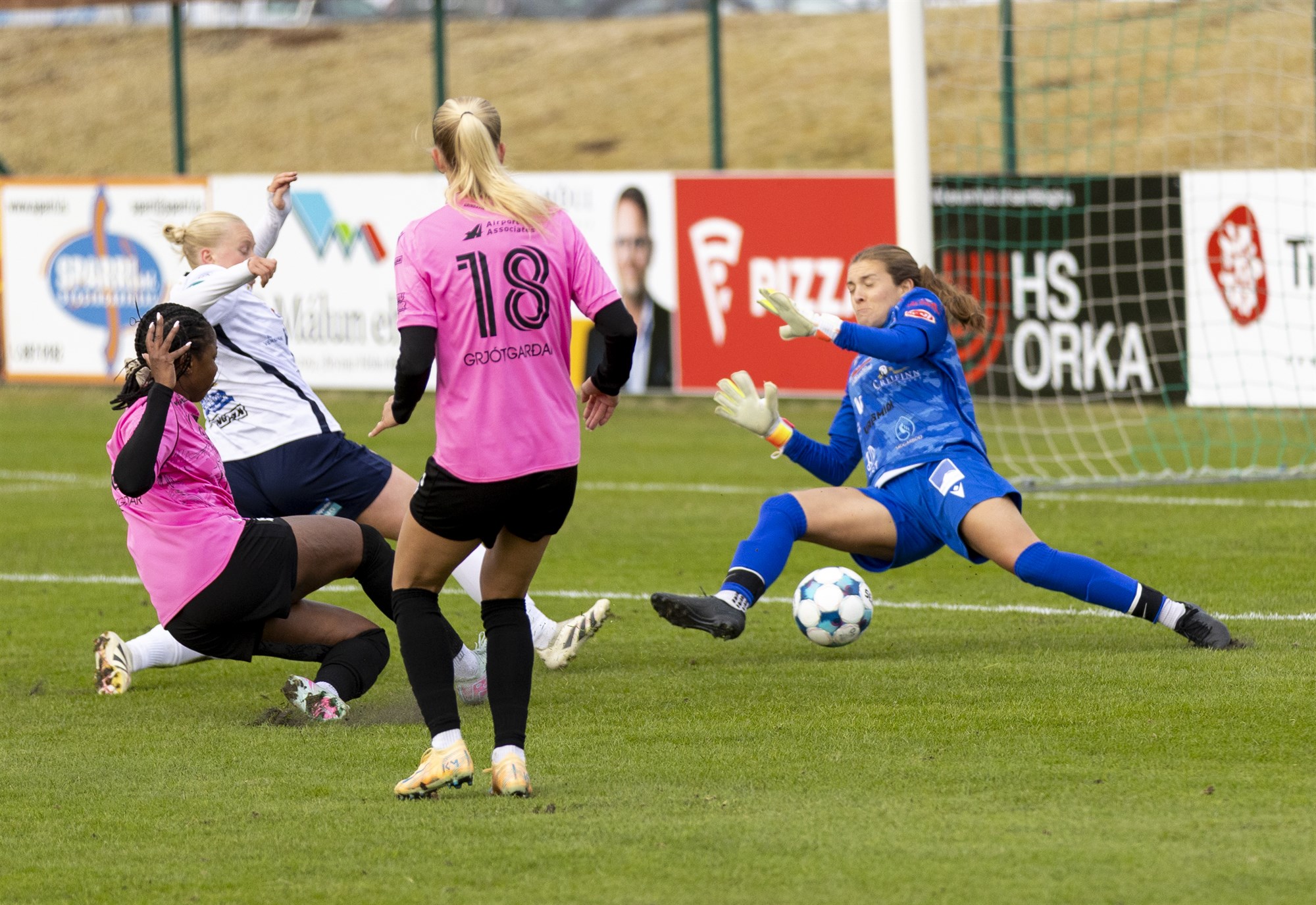 Eftir hornspyrnu tókst Sigríði Emmu F. Jónsdóttur að pota boltanum í netið og tryggja Grindavík/Njarðvík öll stigin þrjú við gríðarleg fagnaðarlæti.