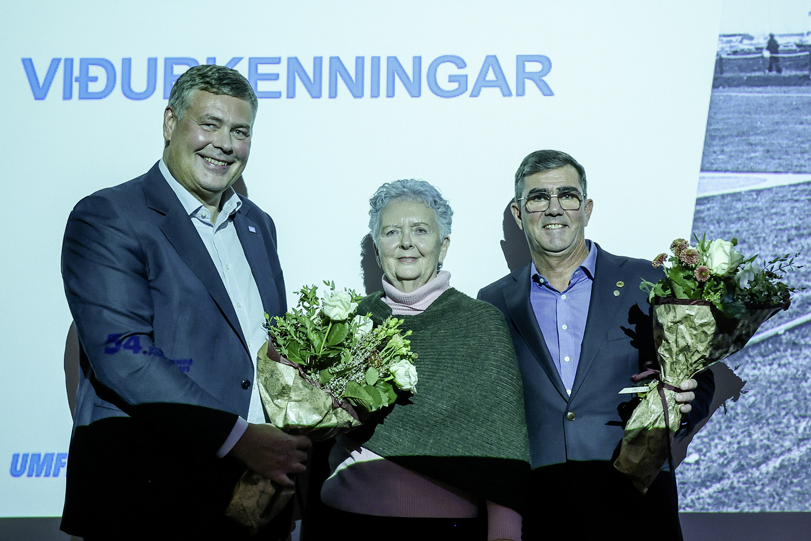 Þau Einar Haraldsson og Magndís Alexandersdóttir bættust í hóp heiðursfélaga UMFÍ á Sambandsþingi UMFÍ í gærkvöldi og voru sæmd með sérstökum heiðursfélagakrossi. Þetta er æðsta viðurkenning Ungmennafélags Íslands.