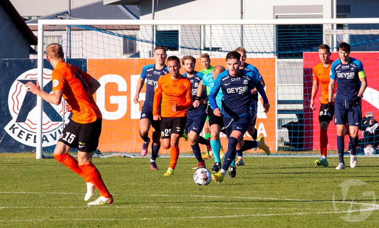 Keflvíkingar unnu sig jafnt og þétt inn í leikinn og fóru að sýna klærnar eftir því sem leið á, sem fyrr voru skyndisóknir þeirra beittar en færin létu standa á sér.