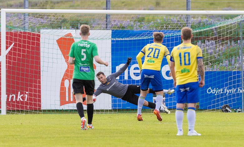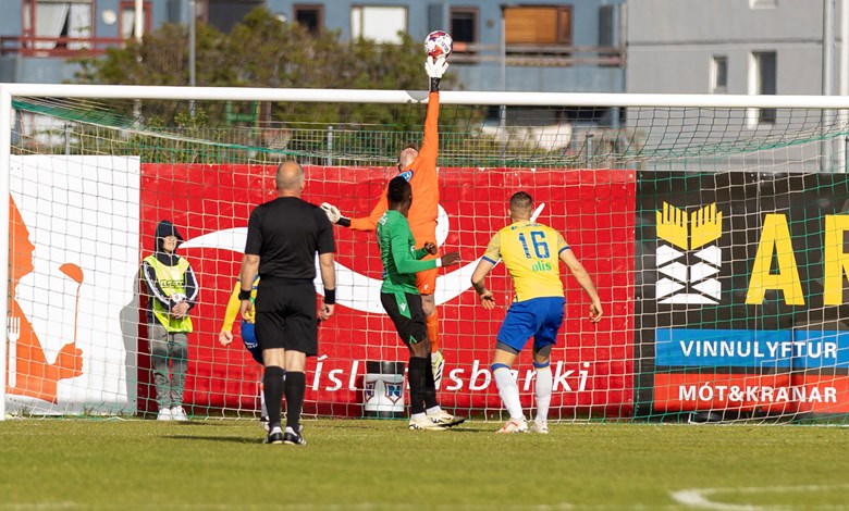 Tveimur mínútum síðar sóttu Njarvíkingar aftur og Oumar Diouck reyndi skot sem fór af varnarmanni og í markstöngina. Amin Cosic fylgdi eftir en aftur kom Aron Dagur í veg fyrir að heimamenn skoruðu.