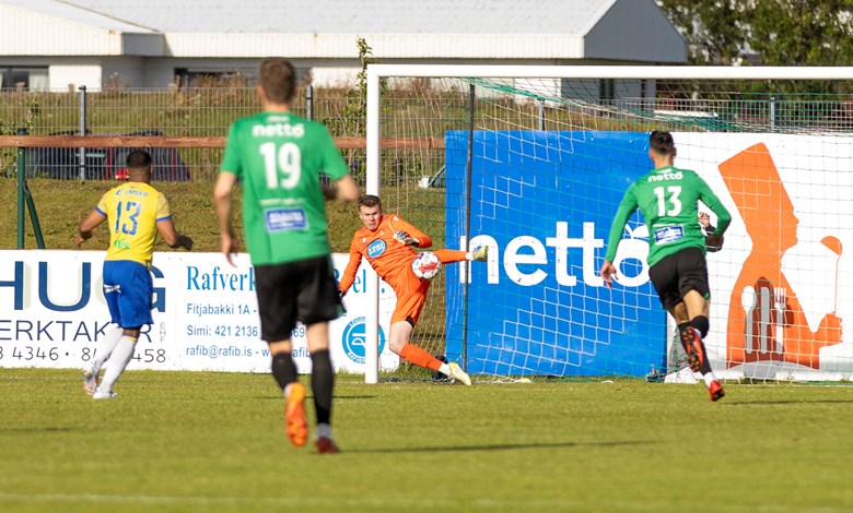 Eftir þetta vöknuðu Grindvíkingar til lífsins og fóru að vinna sig inn í leikinn. Dagur Ingi Hammer Gunnarsson átti sendingu á Kristófer Konráðsson inni í teig Njarðvíkinga, Kristófer náði þrumuskoti en nú var komið að Aroni Snæ Friðrikssyni að verja vel í marki heimamann.