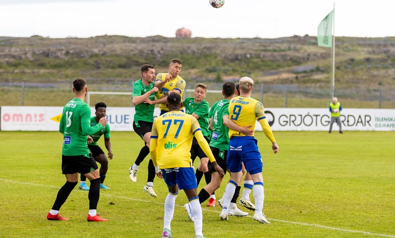 Niðurstaðan því sigur Grindvíkinga sem eru komnir í fjórða sæti deildarinnar en þeir hafa unnið fjóra af síðustu fimm leikjum sínum – eða frá því að Haraldur Árni Hróðmarsson tók við liðinu.