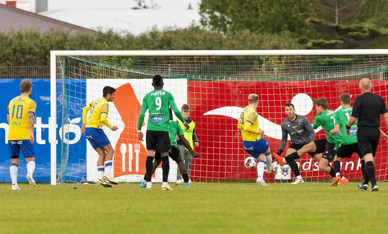 Aron Dagur varð enn og aftur skömmu síðar þegar Kaj Leo Í Bartalstovu sendi fyrir markið og Diouck náði skalla að marki.