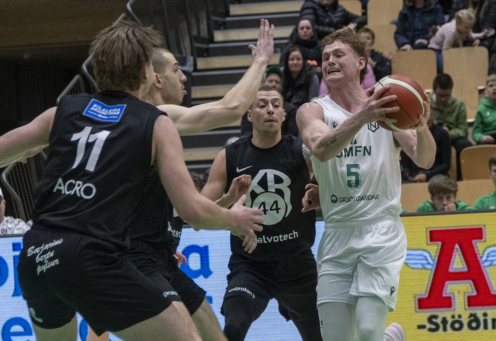 Staðan eftir fyrsta leikhluta var 21:22 en í fyrstu tveimur leikhlutunum var munurinn sjaldan meiri en eitt, tvö stig.