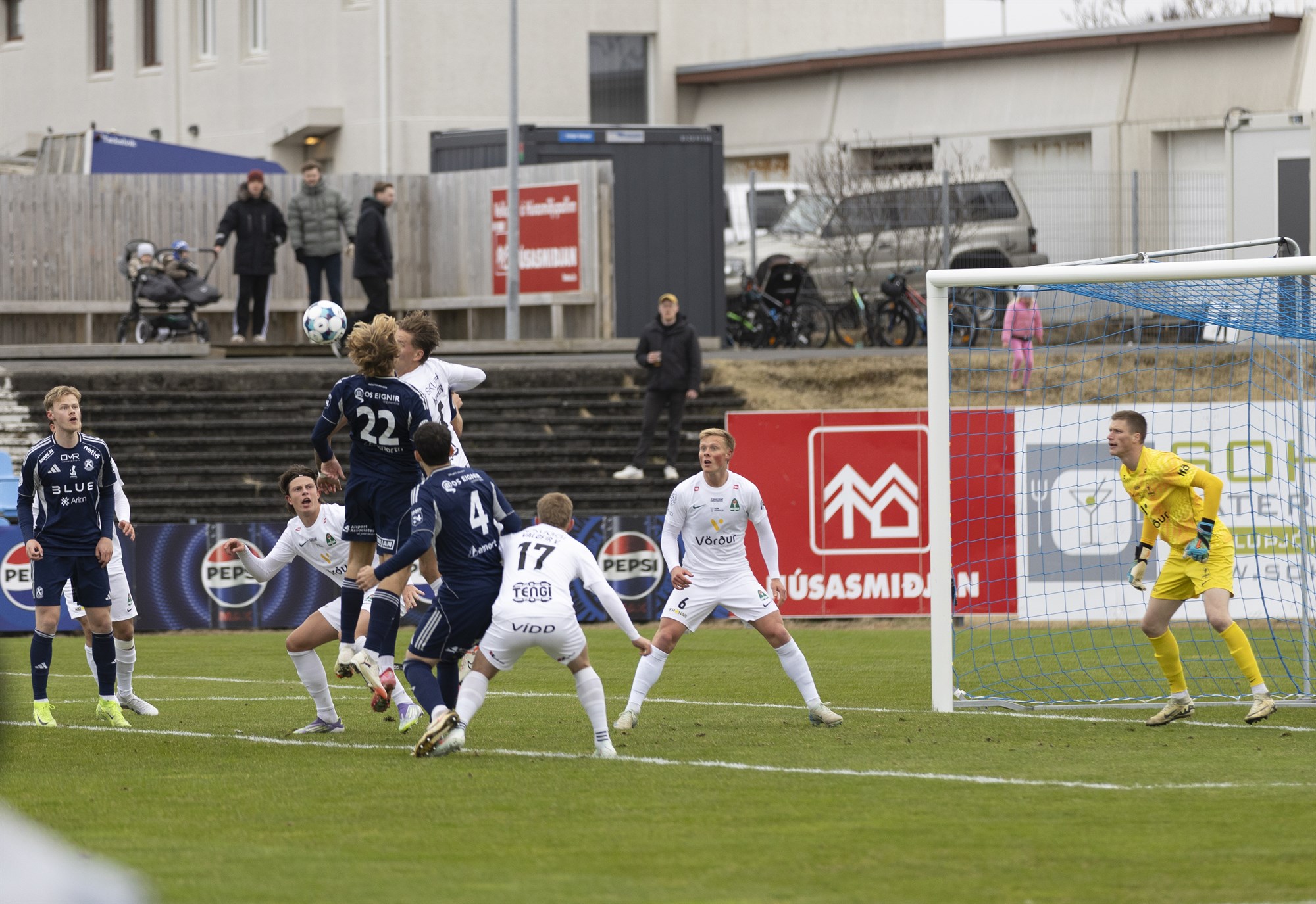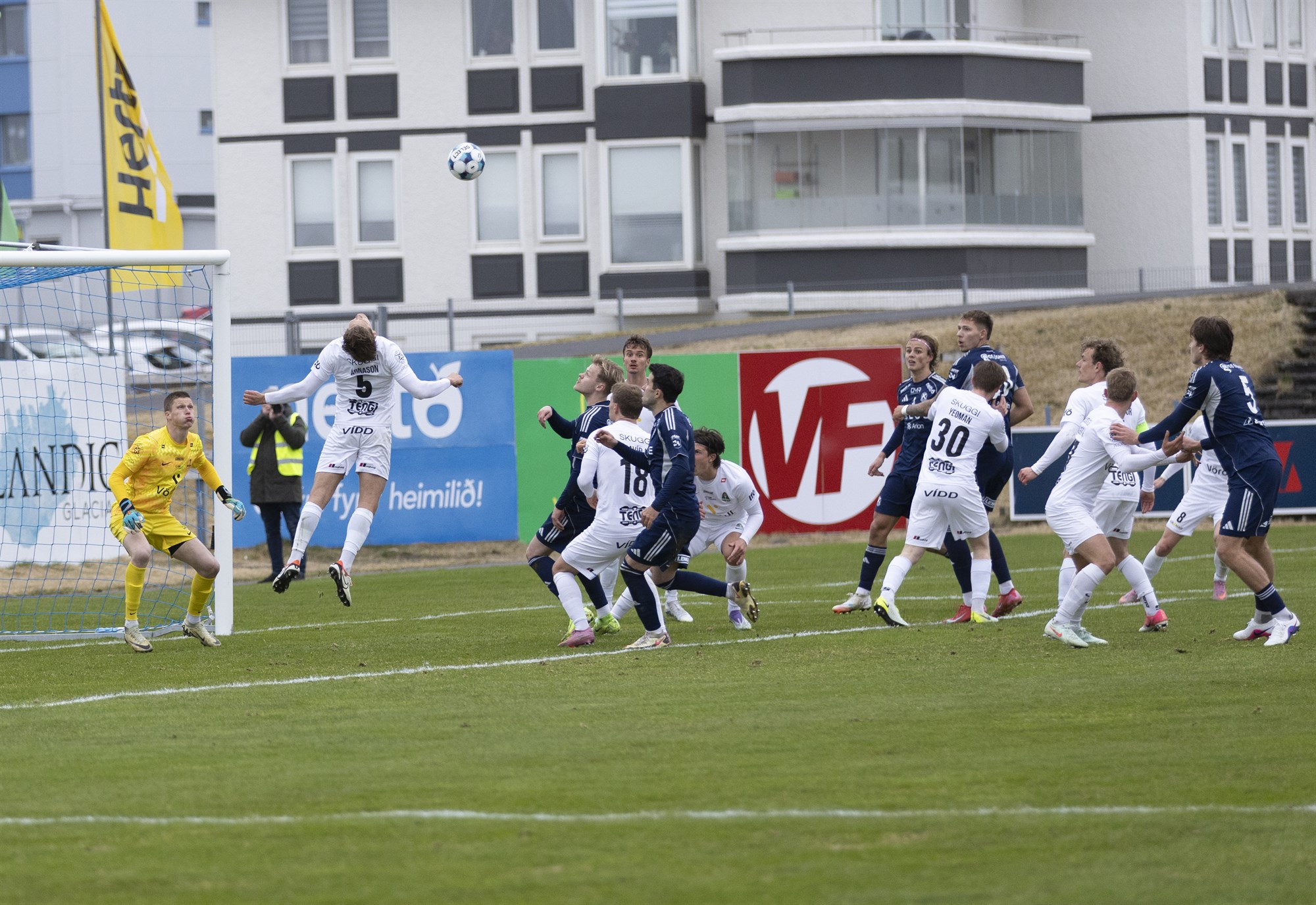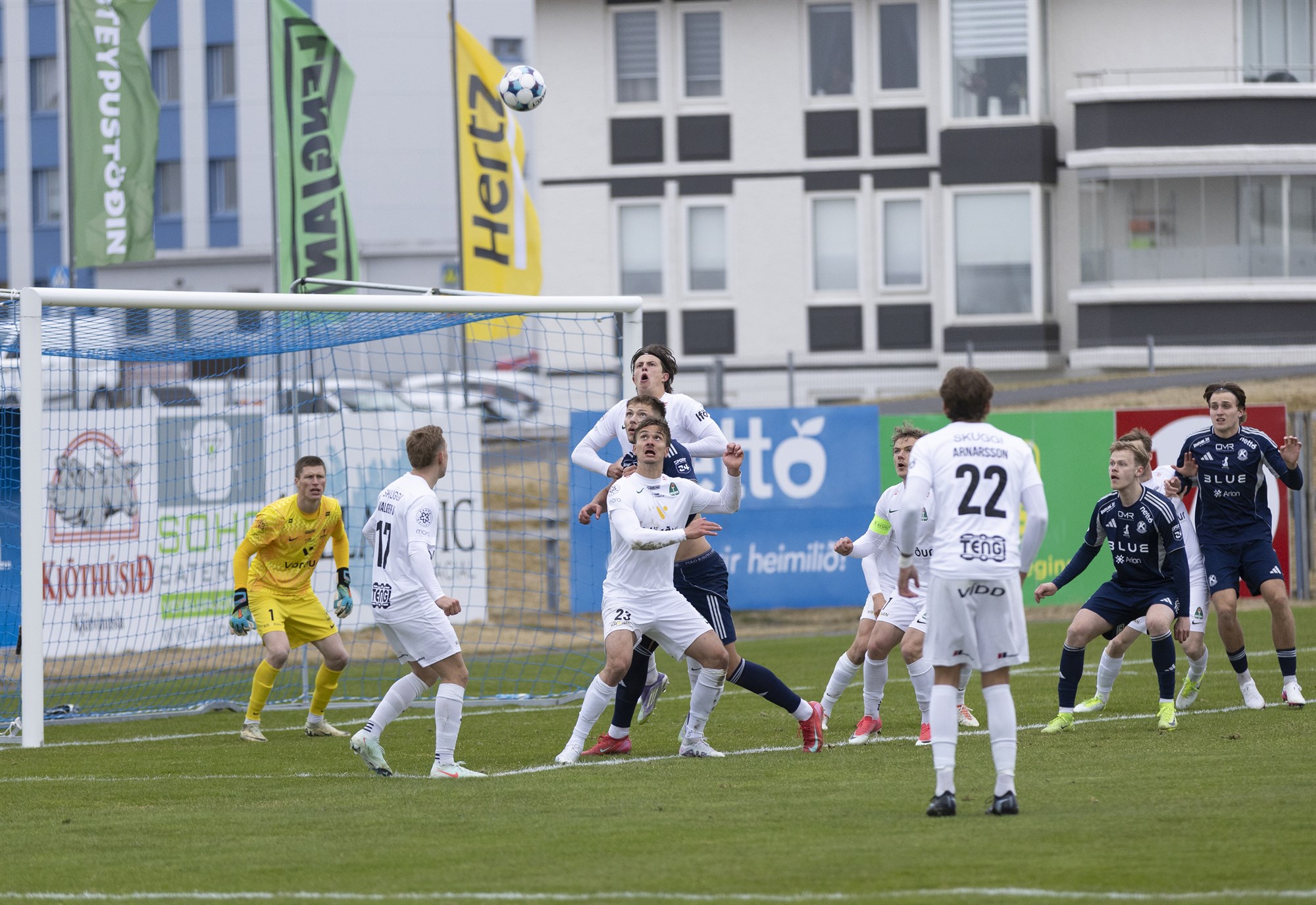 „Það er löngu hætt að vera einhver vorbragur á fótboltaleikjum, við erum að spila allt árið. En að sjálfsögðu eru vellirnir eru kannski ekki upp á tíu í apríl. Mér fannst við samt gera vel og spila vel miðað við aðstæður; koma boltanum snemma inn í teig og vinna seinni boltana.“
