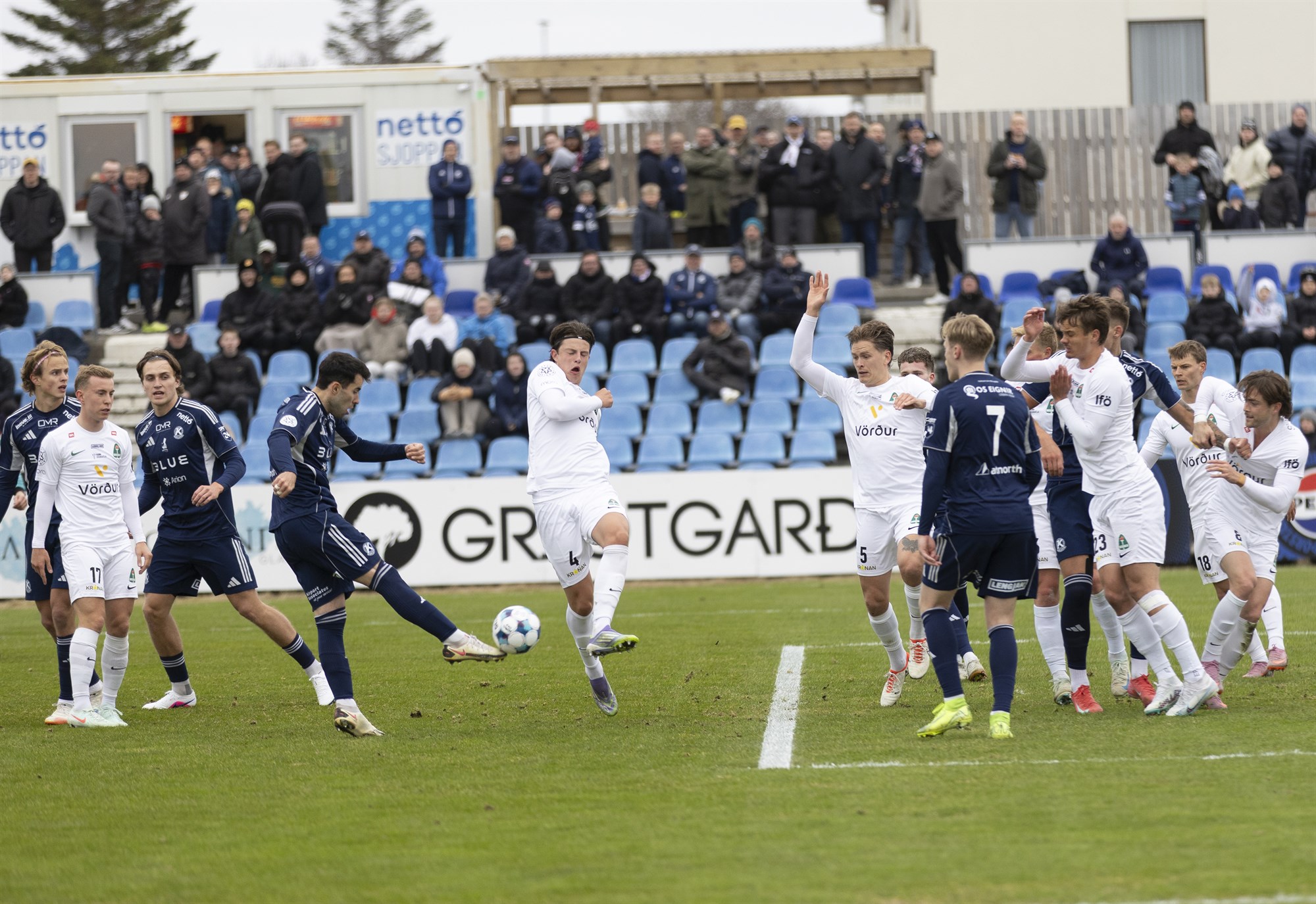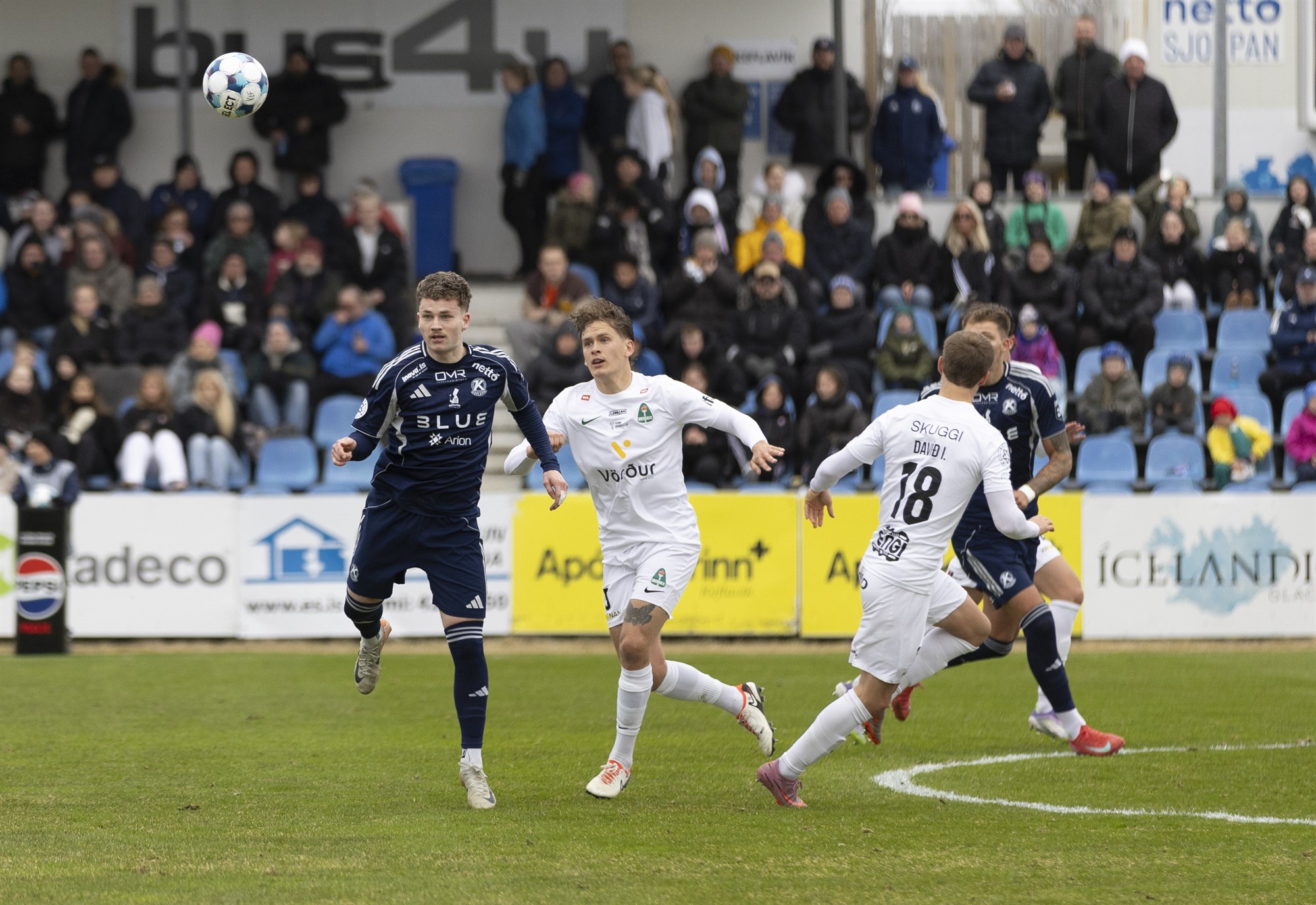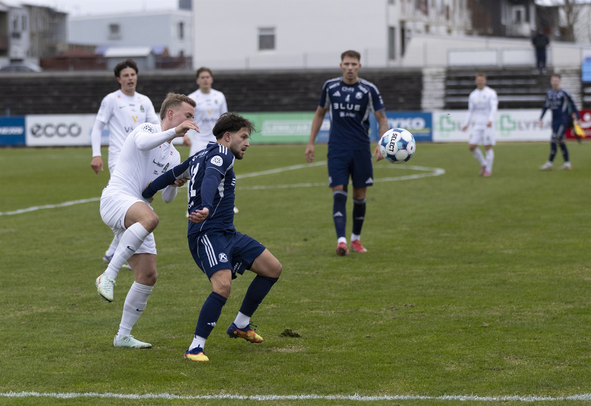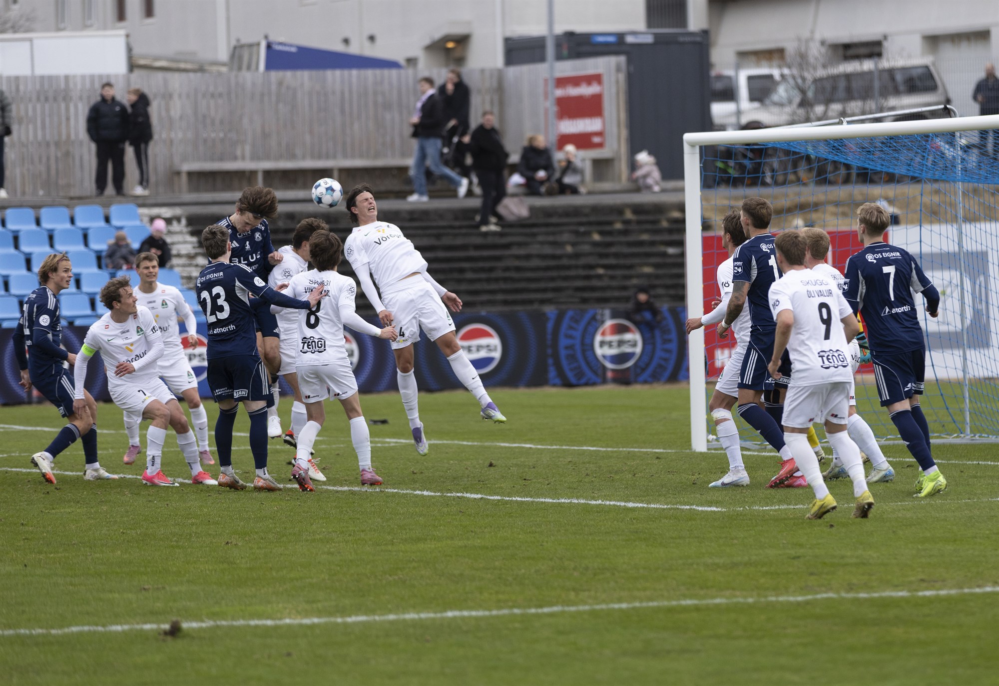 „Það er löngu hætt að vera einhver vorbragur á fótboltaleikjum, við erum að spila allt árið. En að sjálfsögðu eru vellirnir eru kannski ekki upp á tíu í apríl. Mér fannst við samt gera vel og spila vel miðað við aðstæður; koma boltanum snemma inn í teig og vinna seinni boltana.“