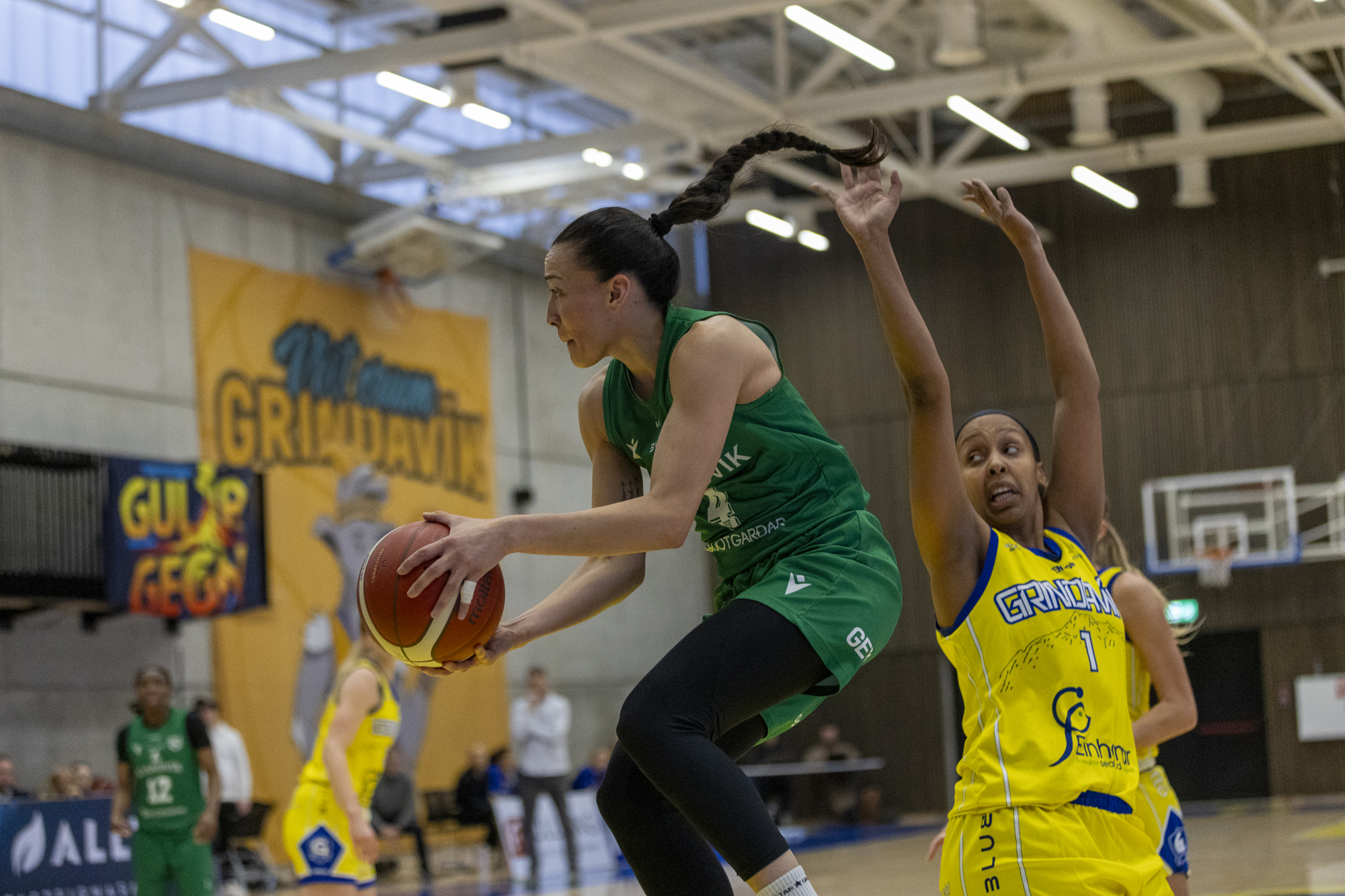 Njarðvíkurliðið kom ákveðið til leiks í upphafi þriðja leikhluta og minnkaði muninn í tvö stig eftir en þá sögðu þær grindvísku hingað og ekki lengra og sigu fram úr og unnu sannfærandi og öruggan nítján stiga sigur 94-75. Staðan 0-2 og Njarðvíkingar eru í vandræðum en næsti leikur liðanna verður á mánudag.