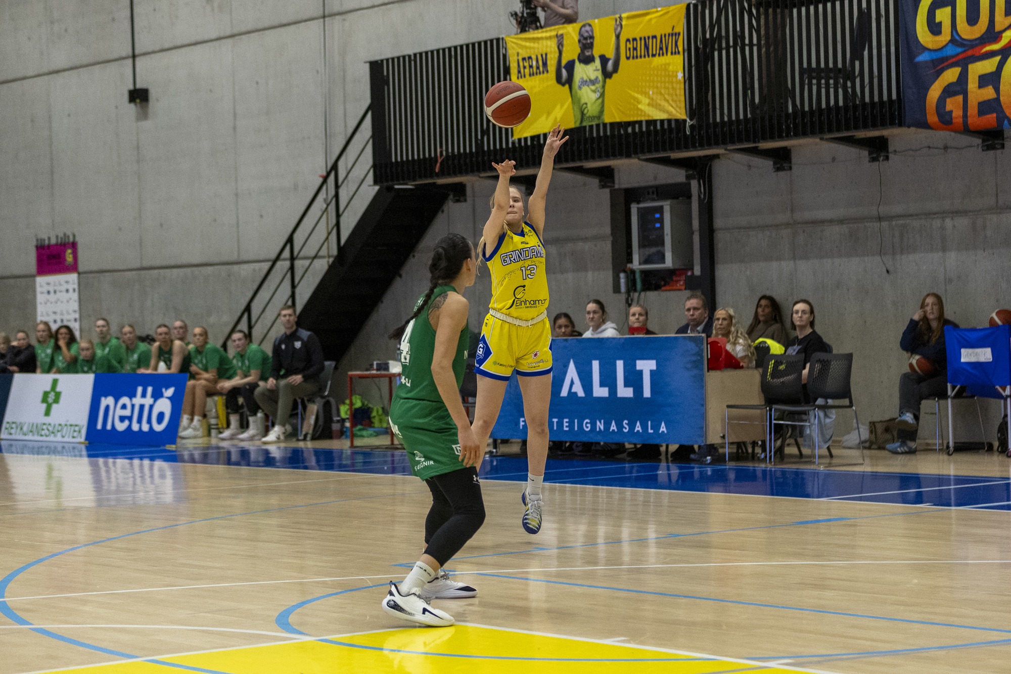 Grindavík: Abby Claire Beeman 24/15 stoðsendingar, Ellen Nystrom 18, Farhiya Abdi 17/5 stoðsendingar, Isabella Ósk Sigurðardóttir 16/13 fráköst, Þórey Tea Þorleifsdóttir 11, Emilie Sofie Hesseldal 8/9 fráköst, Ólöf Rún Óladóttir 0, Jenný Geirdal Kjartansdóttir 0, Ólöf María Bergvinsdóttir 0, María Sóldís Eiríksdóttir 0, Eyrún Hulda Gestsdóttir 0, Telma Hrönn Loftsdóttir 0.