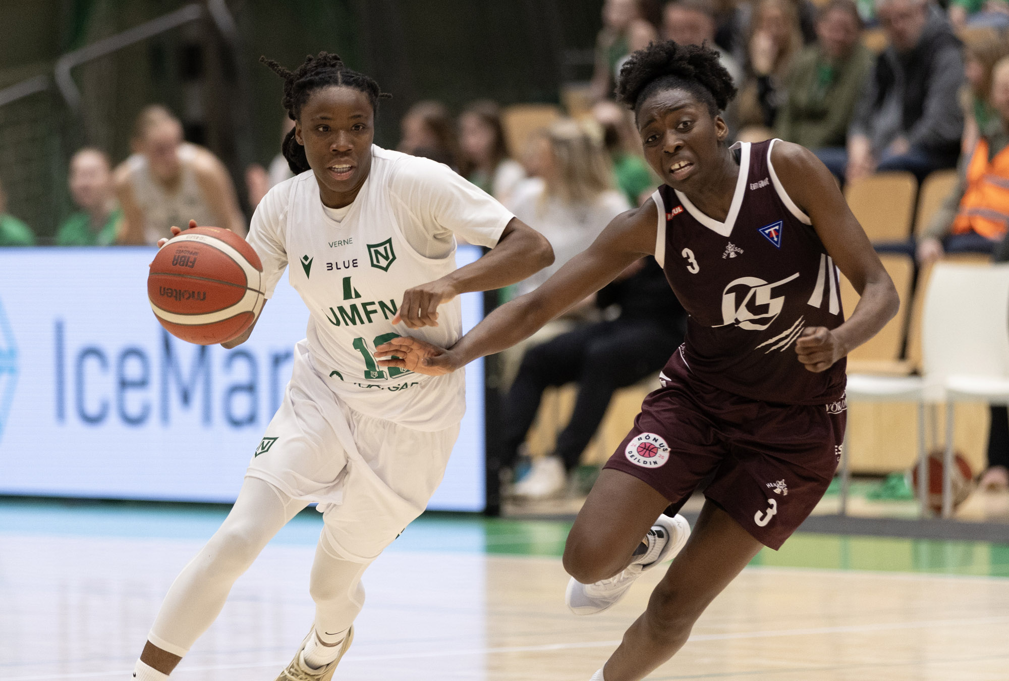 Njarðvíkingar unnu fyrsta sigurinn í úslitakeppni Bónus deildar kvenna í körfubolta þegar liðið vann Tindastól í 8-liða úrslitum í IceMar höllinni í kvöld. Lokatölur 103-97.