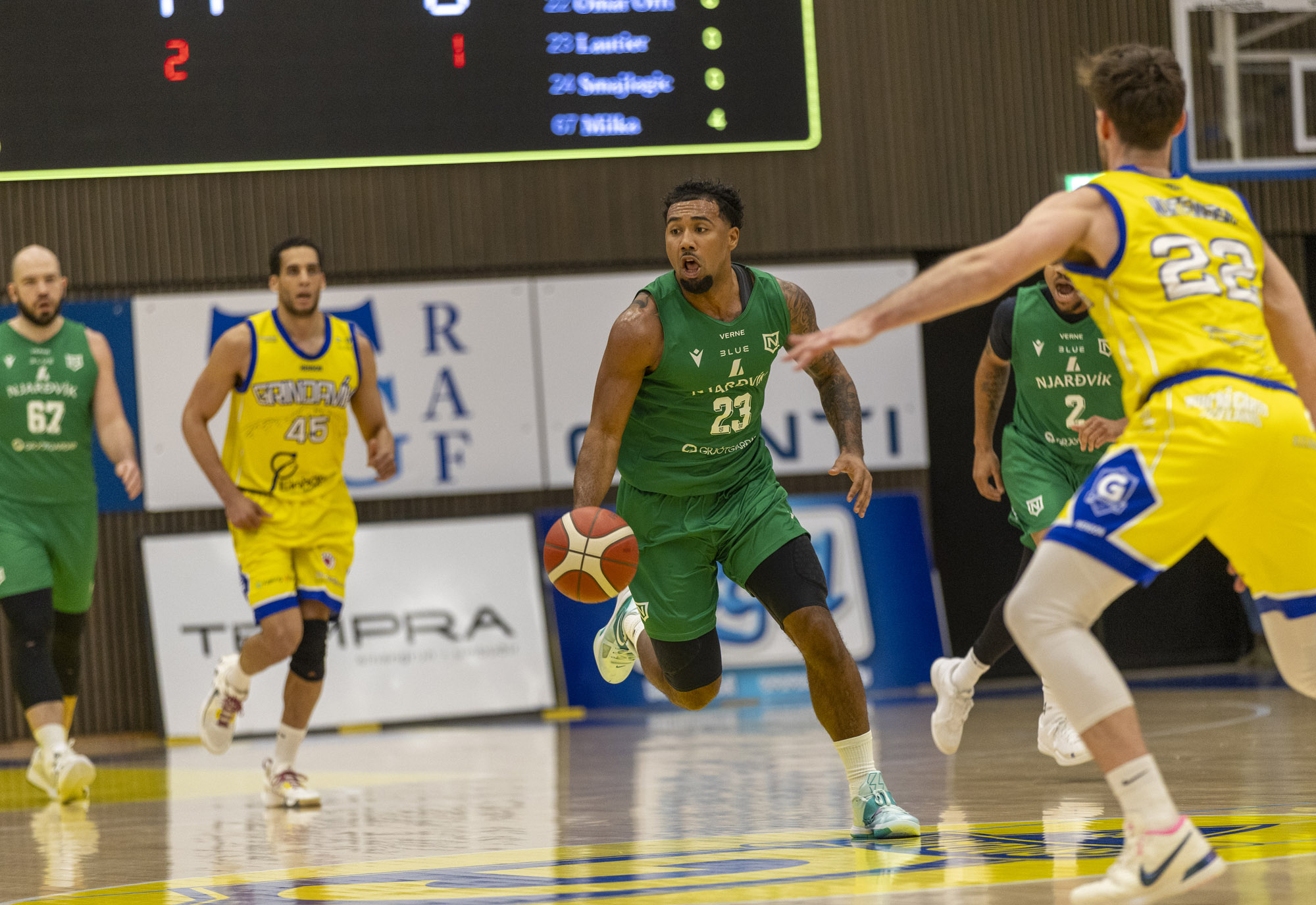 Njarðvík: Dominykas Milka 24/8 fráköst/6 stoðsendingar, Sven Smajlagic 23/8 fráköst, Luwane Pipkins 19/4 fráköst/8 stoðsendingar, Dwayne Lautier-Ogunleye 13/7 fráköst, Snjólfur Marel Stefánsson 6, Veigar Páll Alexandersson 6, Brynjar Kári Gunnarsson 6, Guðmundur Aron Jóhannesson 0, Kristófer Mikael Hearn 0, Ómar Orri Gíslason 0, Bóas Orri Unnarsson 0, Almar Orri Jónsson 0.