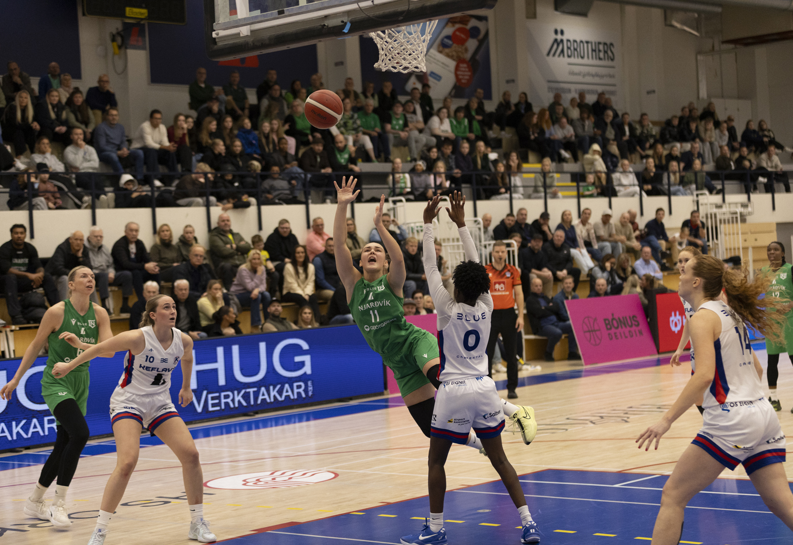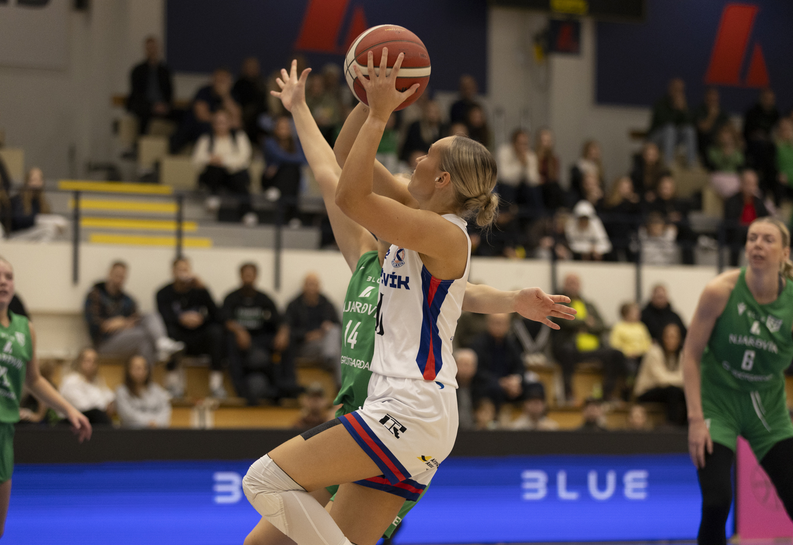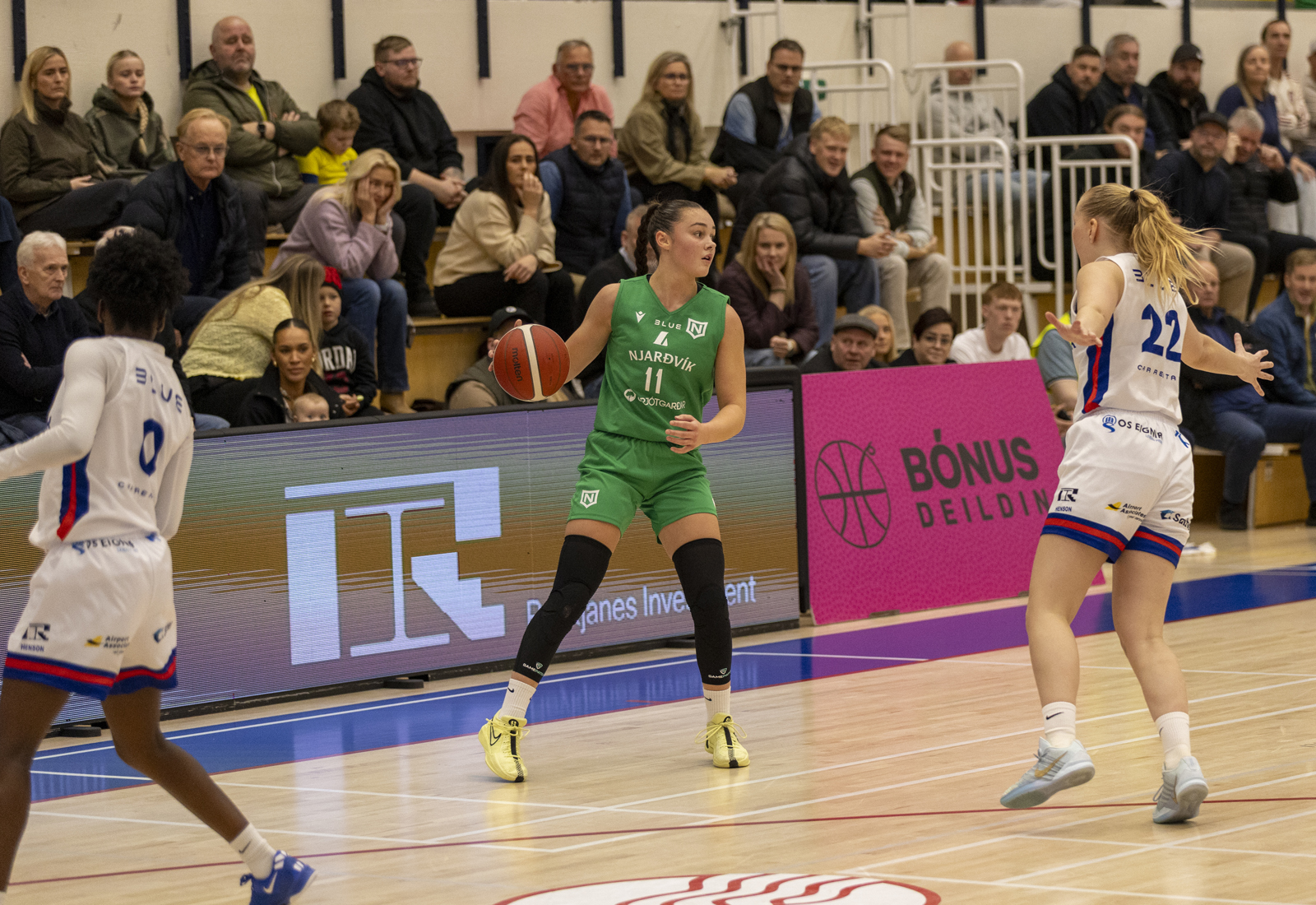Njarðvík fór með sigur á Keflavík í 6. umferð Bónusdeildar kvenna en leikurinn fór fram í Blue-höllinni í Keflavík síðdegis. Montrétturinn er því í Njarðvík og Reykjanesbær þar með grænn.