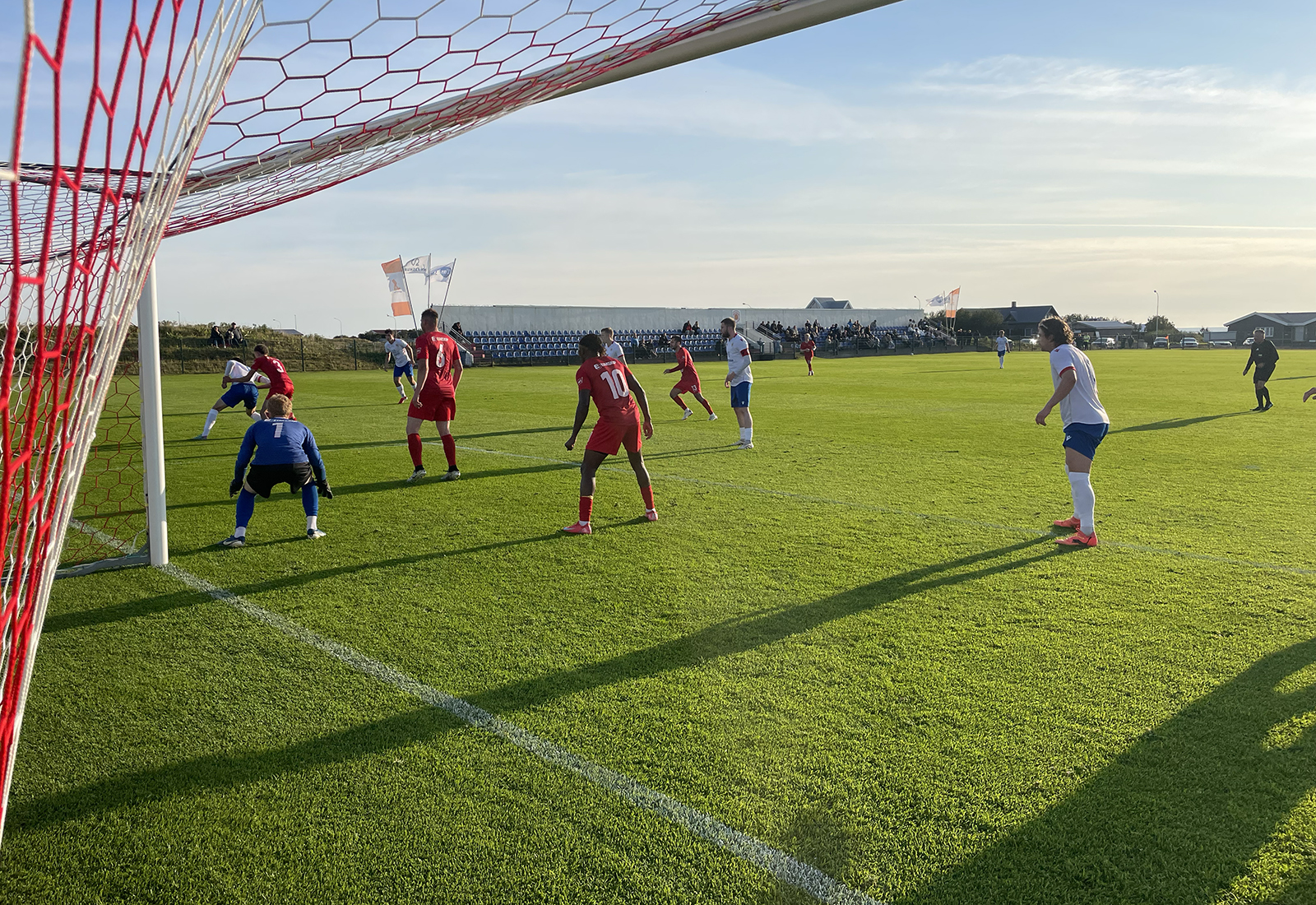 Reynismenn í Sandgerði tóku á móti Sindra frá Hornafirði á frábærum Brons-velli sínum í Sandgerði í kvöld í blíðskaparveðri. Eftir að allt stefndi í jafntefli náðu Reynismenn að skora sigurmarkið í 3-2 sigri og því eru þeir áfram í baráttunni um að komast upp þó nokkuð sé í toppliðin í deildinni.