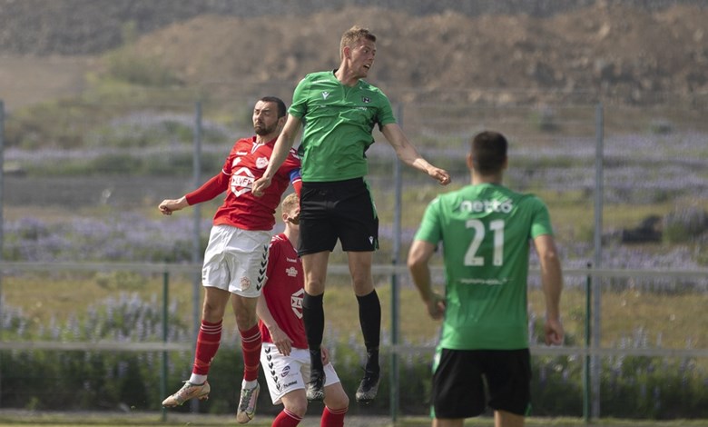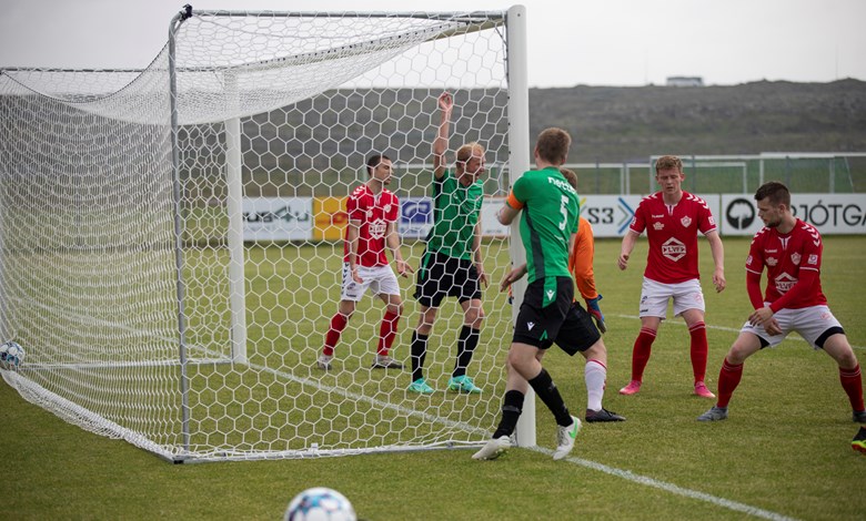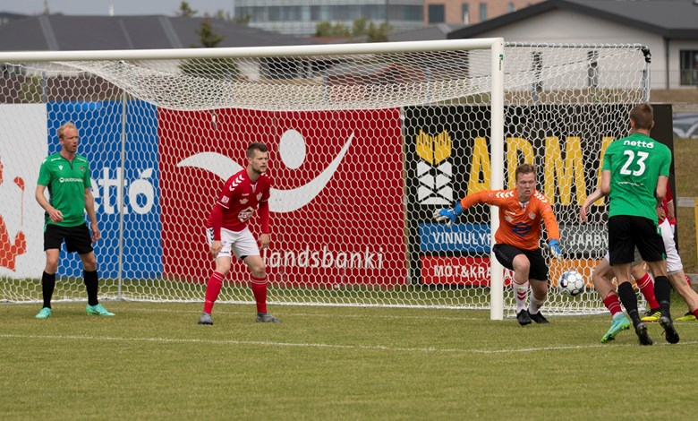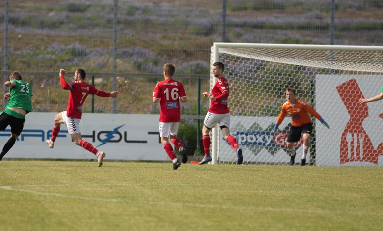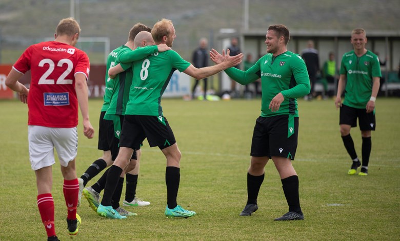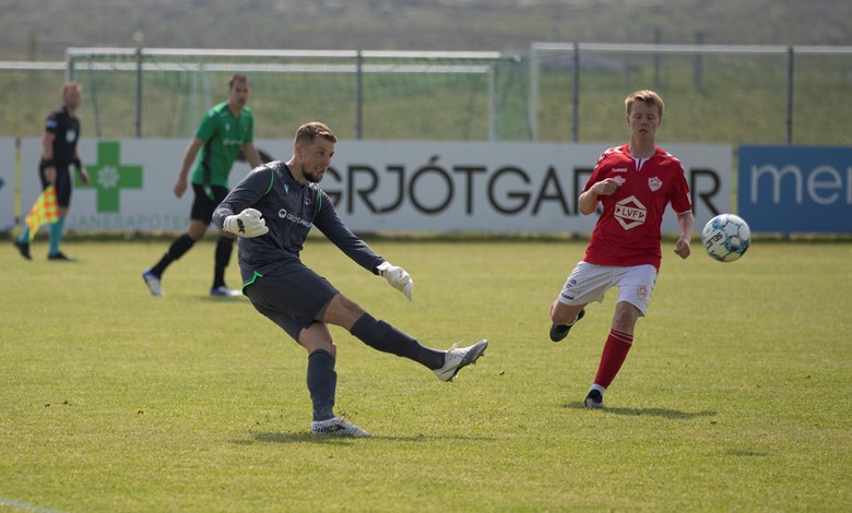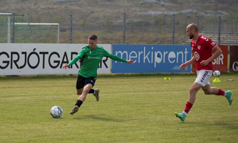 Hörður Sveinsson, ekki síður gamalt brýni, kom Reyni aftur yfir á 73. mínútu en Edon Osmani varð fyrir því óláni að skora sjálfsmark á 90. mínútu og liðin skildu því jöfn.