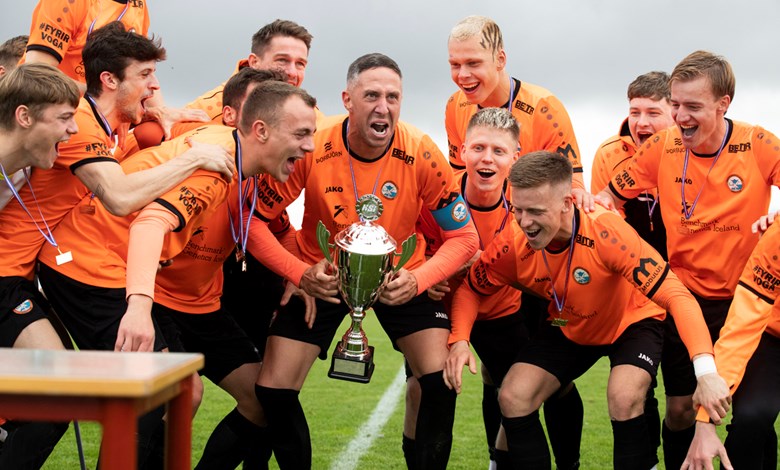 Þróttarar voru þegar búnir að tryggja sér sæti í næstefstu deild í fyrsta sinn í sögu félagsins en þeir vildu lyfta bikarnum á heimavelli í dag fyrir framan stuðningsmenn sína sem fjölmenntu á völlinn en Sveitarfélagi Vogar bauð öllum frítt á leikinn.