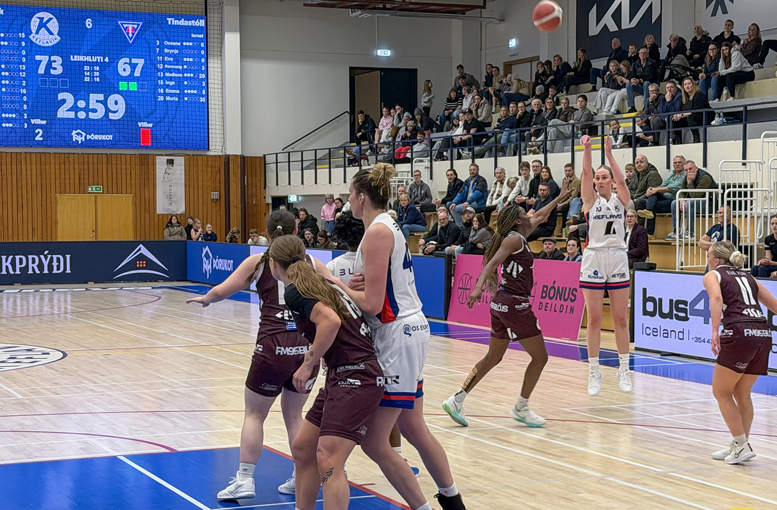 Keflavík: Sara Rún Hinriksdóttir 18/5 fráköst, Keishana Washington 16/9 fráköst/10 stoðsendingar, Thelma Dís Ágústsdóttir 16/4 fráköst, Anna Ingunn Svansdóttir 12, Emelía Ósk Gunnarsdóttir 12/6 fráköst, Sofie Tryggedsson Preetzmann 3/4 fráköst, Angelina Turmel 3/10 fráköst/5 varin skot, Agnes María Svansdóttir 2, María Jónsdóttir 0, Eva Kristín Karlsdóttir 0, Bríet Sif Hinriksdóttir 0, Katla Rún Garðarsdóttir 0.