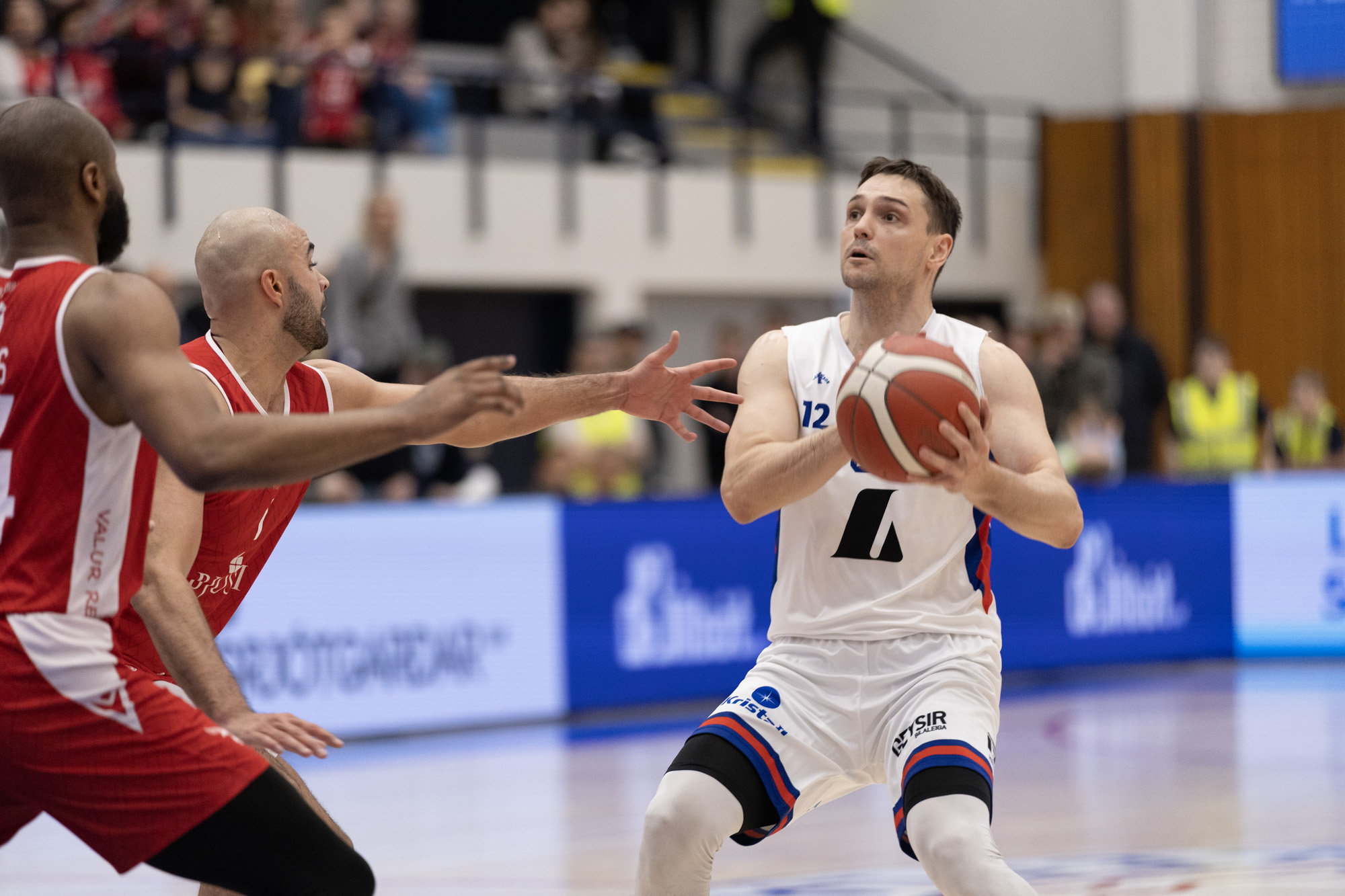 Valsmenn gáfu tóninn í upphafi leiks með meiri ákefð og betri hittni og náðu sjö stiga forskoti eftir fyrsta leikhluta og bættu svo við tveimur stigum í forskotið fyrir hálfleik, 39-48.