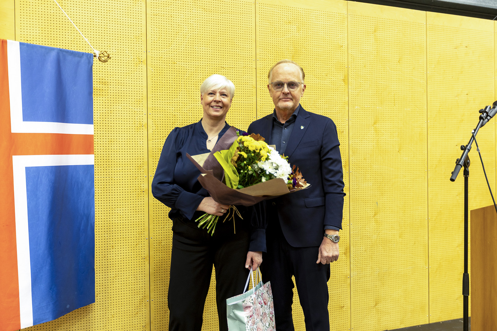 Kjartan Már Kjartansson, bæjarstjóri í Reykjanesbæ, mætti í veisluna og færði Akurskóla bókagjöf.