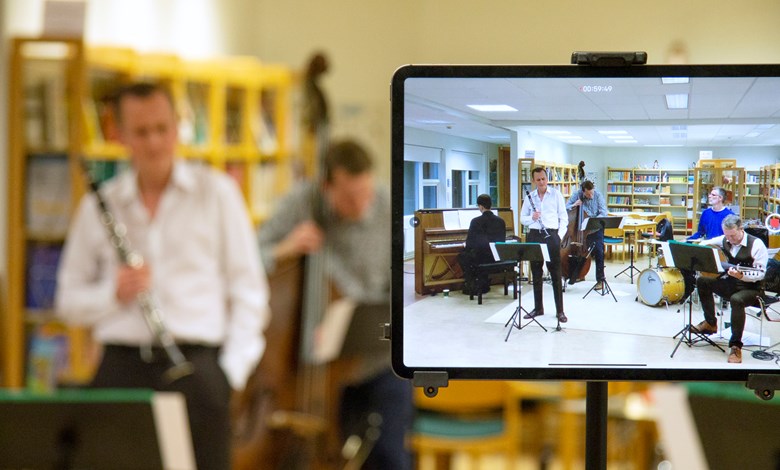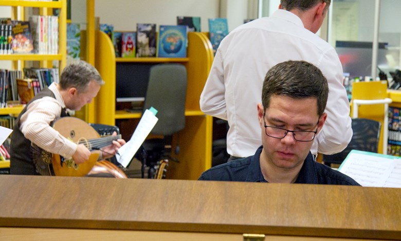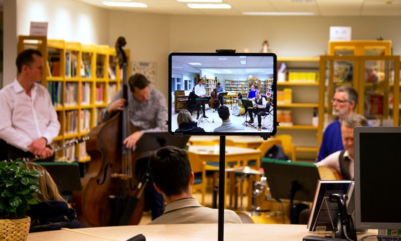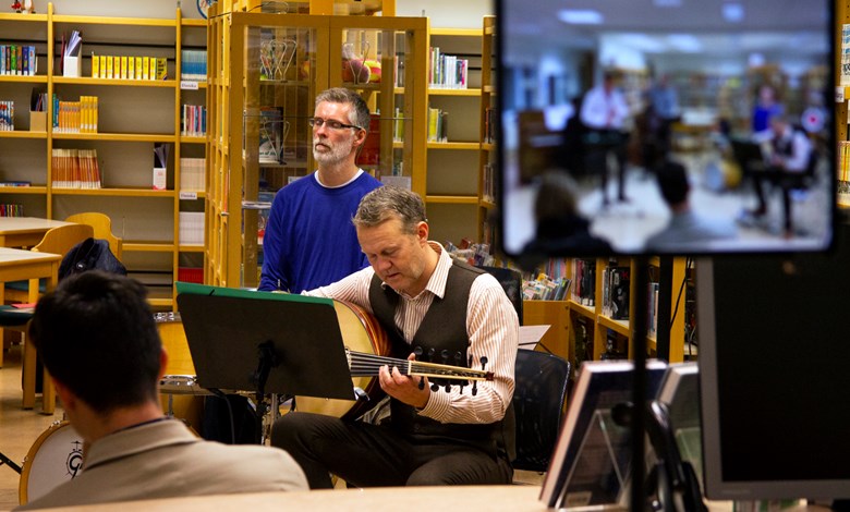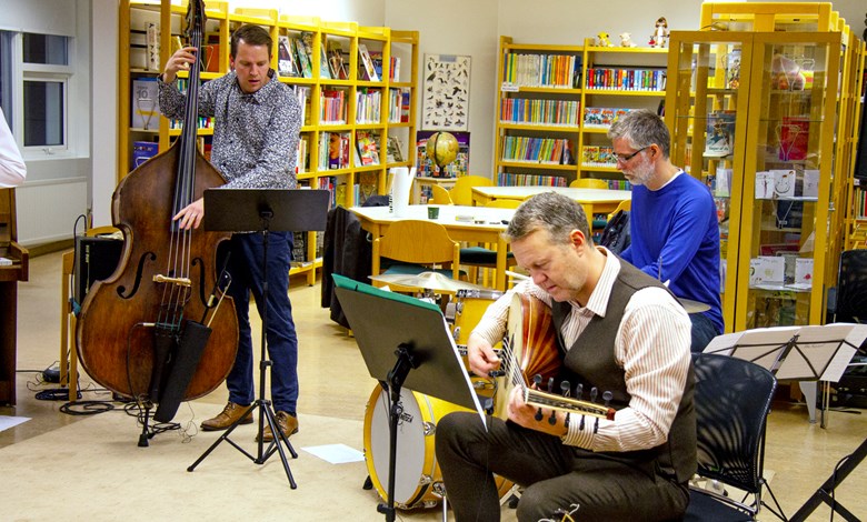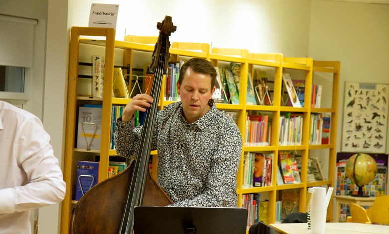 Það voru þýðir tónar sem ómuðu um Bókasafn Sandgerðis þegar bassaleikarinn Sigmar Þór Matthíasson, ásamt þeim Ásgeiri Ásgeirssyni (oud og önnur strengjahljóðfæri), Hauki Gröndal (klarinett), Matthíasi Hemstock (trommur) og píanóleikaranum Inga Bjarna Skúlasyni, léku við hvern sinn fingur á tónleikum Jazzfjelags Suðurnesjabæjar sem haldnir voru í Bókasafni Sandgerðis í síðustu viku.
