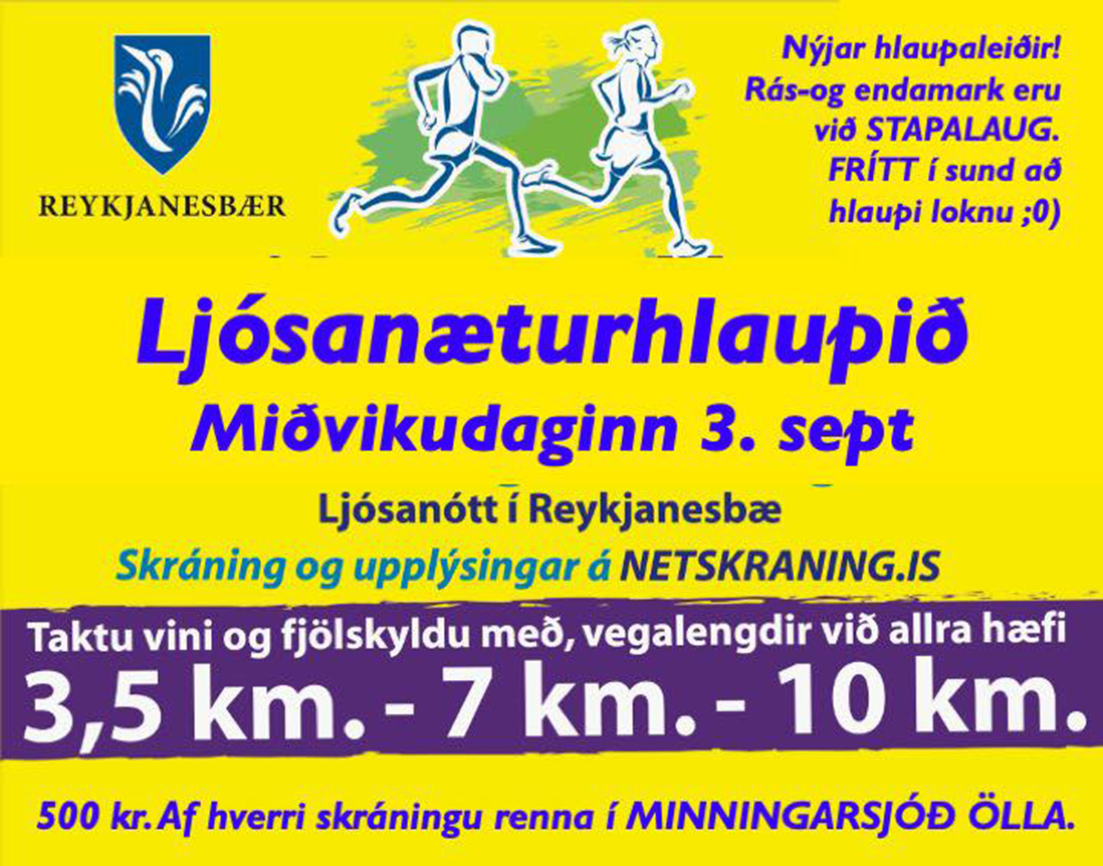 Ljósanæturhlaupið fer fram miðvikudaginn 3. september kl 18.30 en það er árlegur viðburður sem fram fer í tengslum við Ljósanótt í Reykjanesbæ og er í umsjón Vikars Sigurjónssonar og hlaupið er um götur Reykjanesbæjar.
