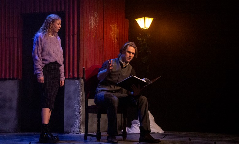 Leikfélag Keflavíkur hóf sýningar á jólasöngleiknum Jólasaga í Aðventugarðinum um síðustu helgi. Verkið byggir á hinni sígildu sögu Jólaævintýri eftir Charles Dickens en hefur verið staðfært að Suðurnesjum og fært nær okkur í tíma.