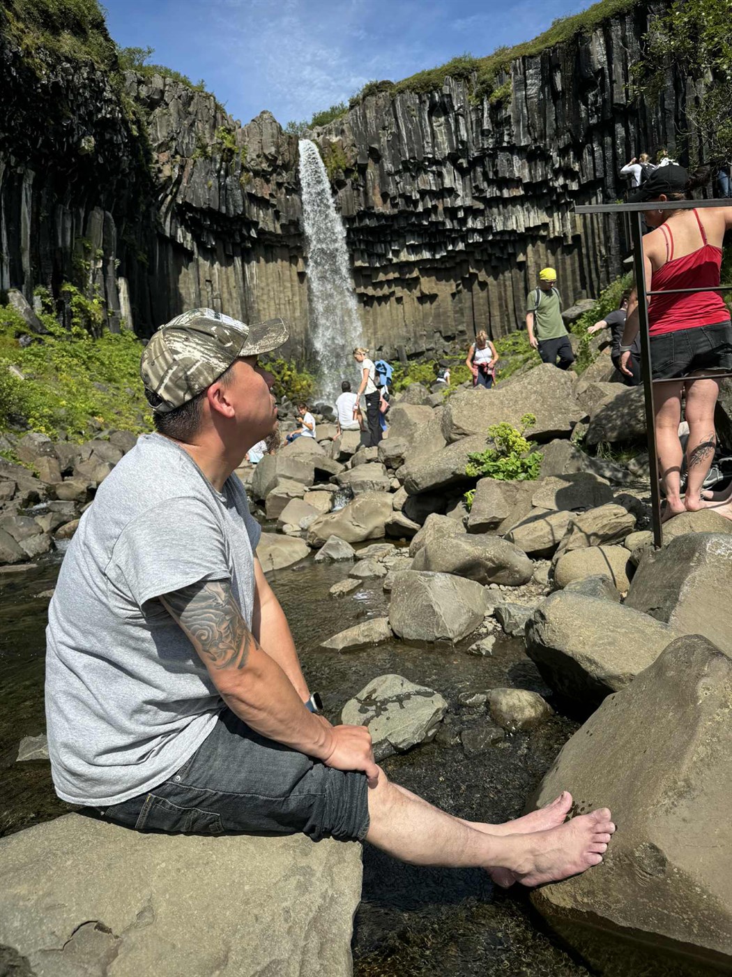 „Tíu daga ferð um landið sem endaði í Skaftafelli í 25+ stiga hita, upplifunin var eins og að ver á Majorka þar sem við sátum við Svartafoss og kældum okkur í fersku köldu vatninu ásamt fjölda erlendra ferðamanna“.