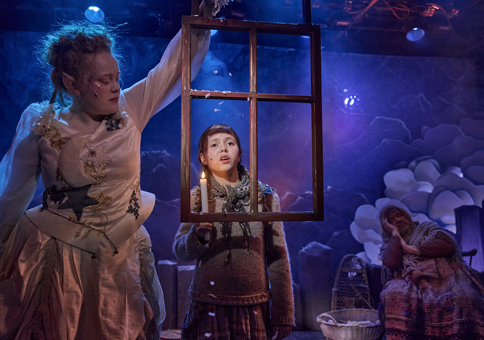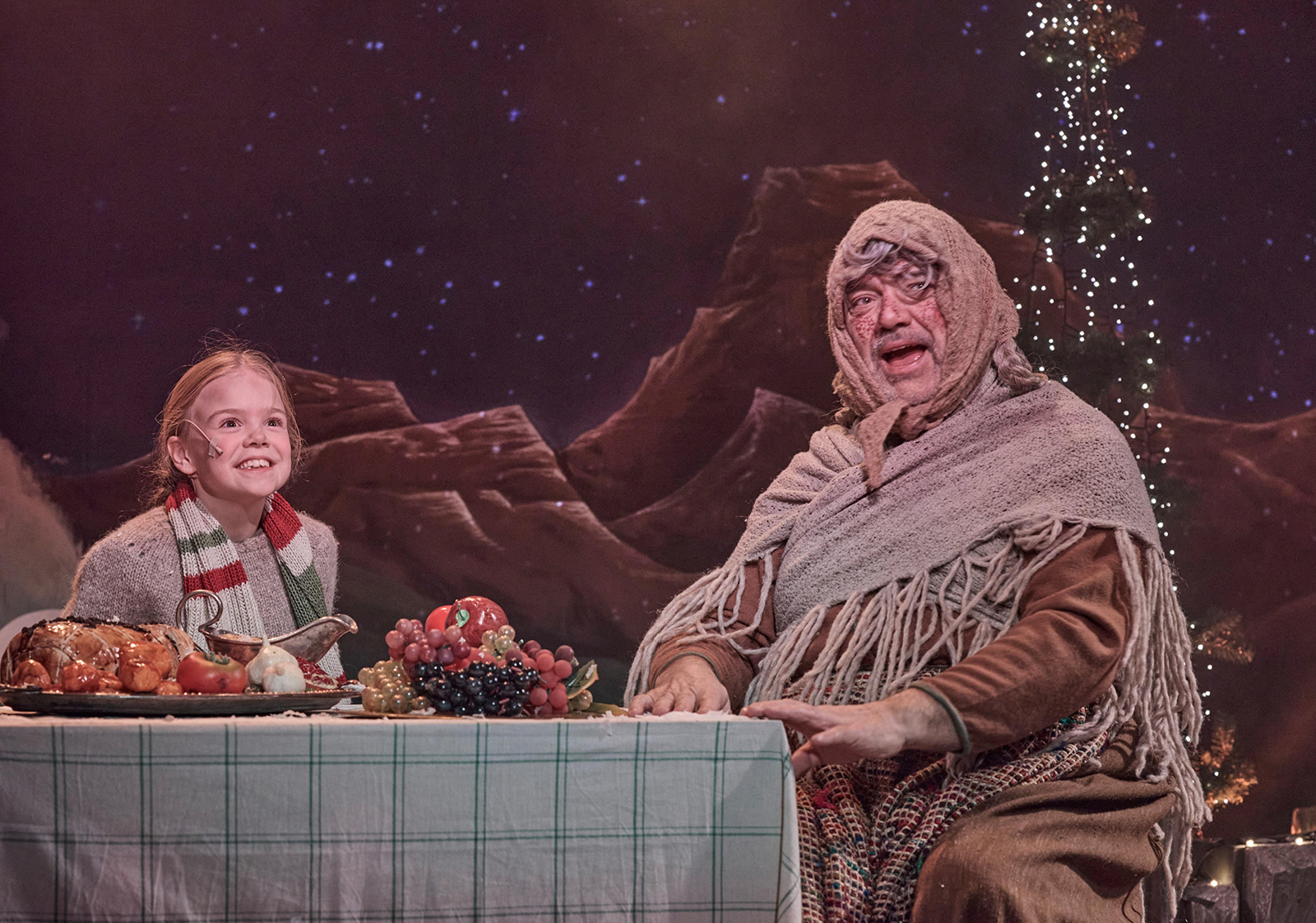Hrafntinna Björk Ævarsdóttir og Júlía Eldon Logadóttir leika barnið í Jólagjöf Skruggu • Jólaævintýri leikhúsálfanna í Þjóðleikhúsinu