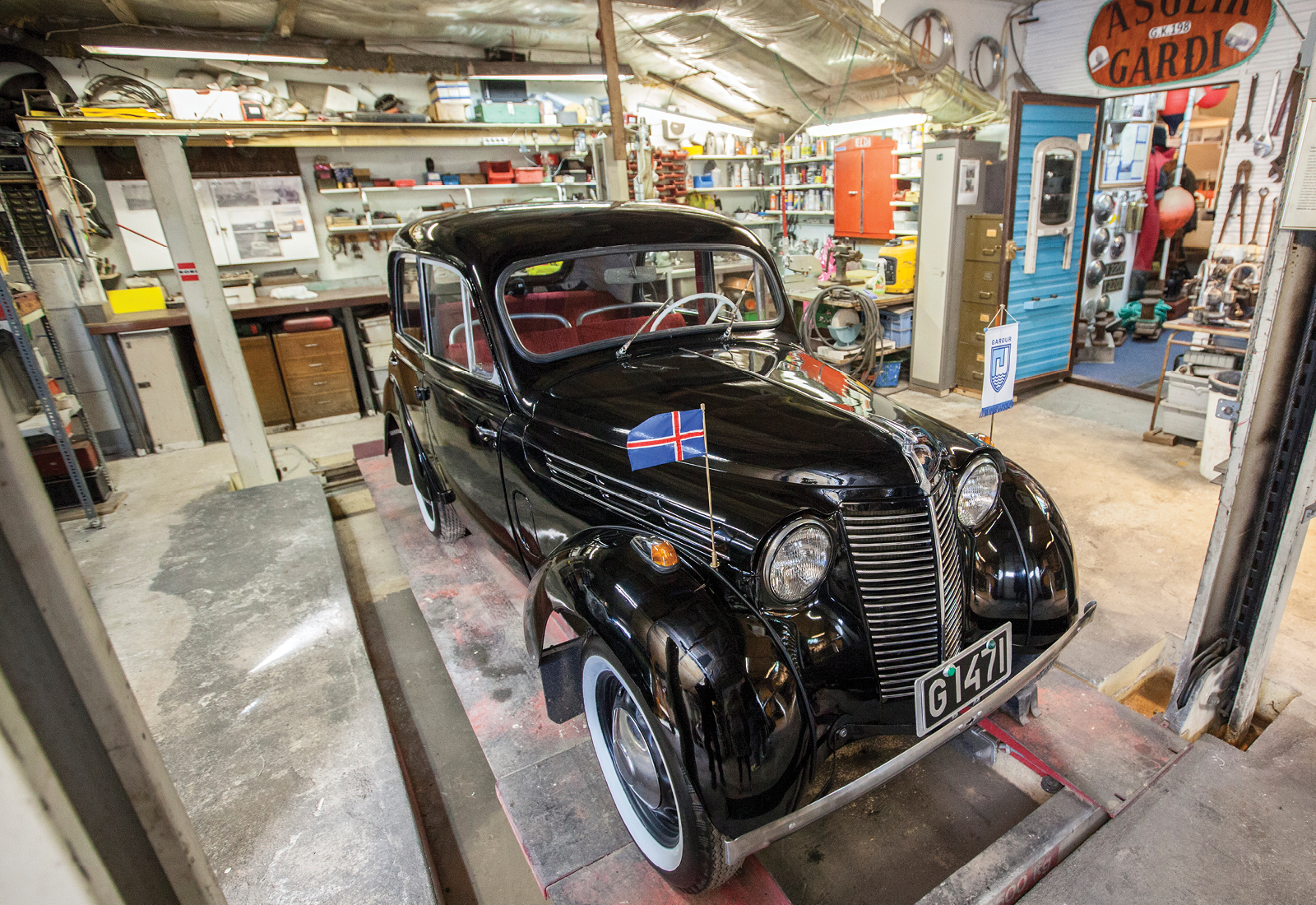 Einkasafnið í Bragganum snýst ekki bara um báta og vélar heldur líka gamla bíla. Þar hefur Ásgeir unnið náið með syni sínum, Guðna.