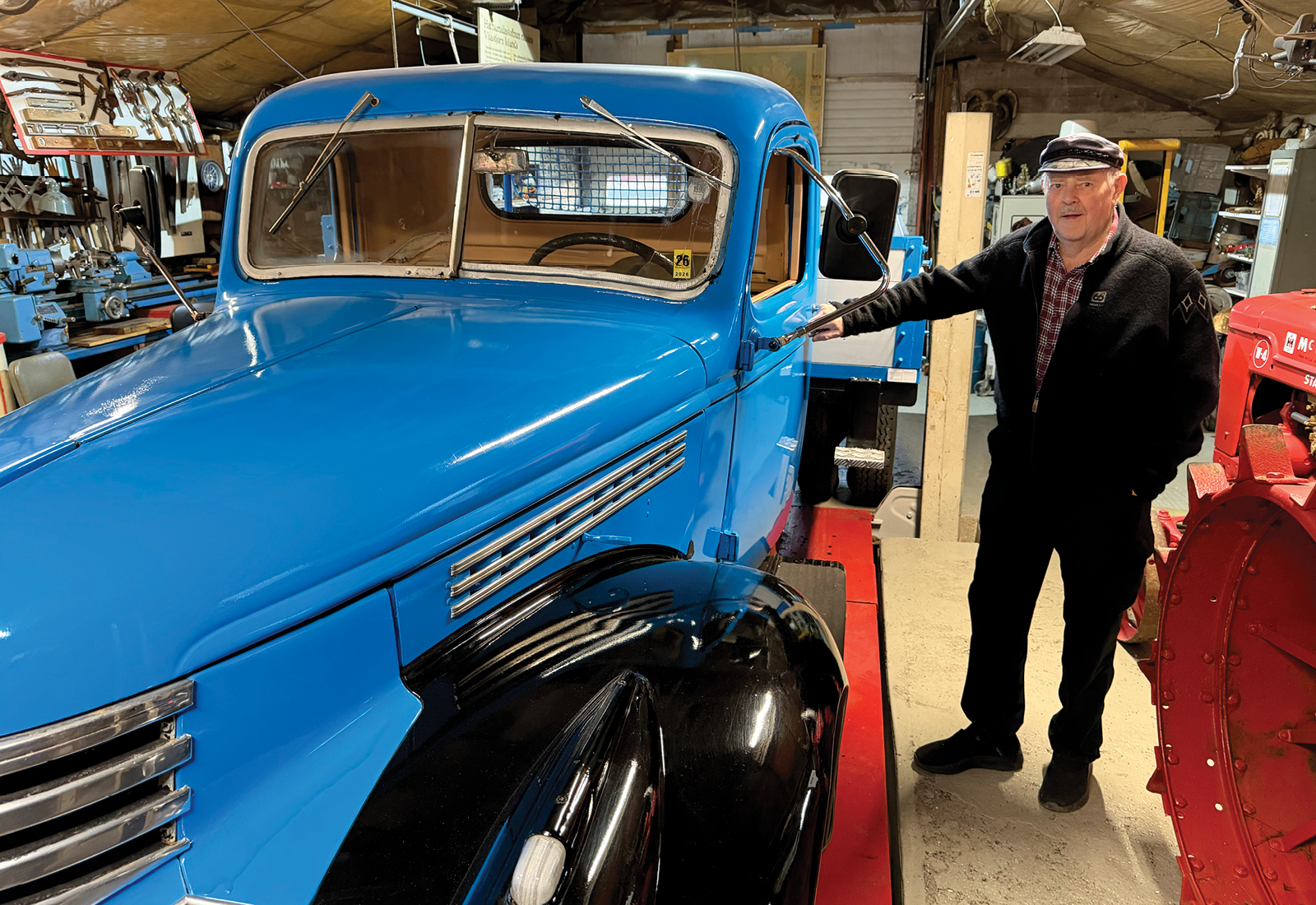 „Við erum búnir að gera upp fjóra traktora og að minnsta kosti þrjá bíla,“ segir hann. Nýjasta verkefnið er gamall vörubíll, af sömu árgerð og sá sem faðir hans átti.