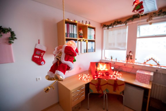 Á Heilbrigðisstofnun Suðurnesja er sannkallað jólaland. Heimahjúkrun vann jólaskreytingakeppnina.