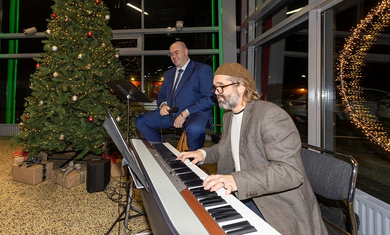 Á þriðja hundrað gesta mættu í jólaboð Bílakjarnans og Nýsprautunar á Fitjum síðasta fimmtudag og hlustuðu á ljúfa jólatóna þeirra Elmars Þórs Haukssonar og Arnórs Vilbergssonar.