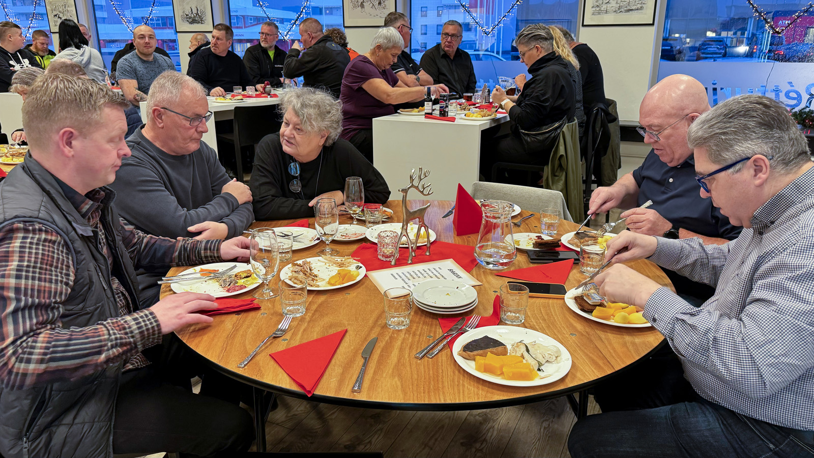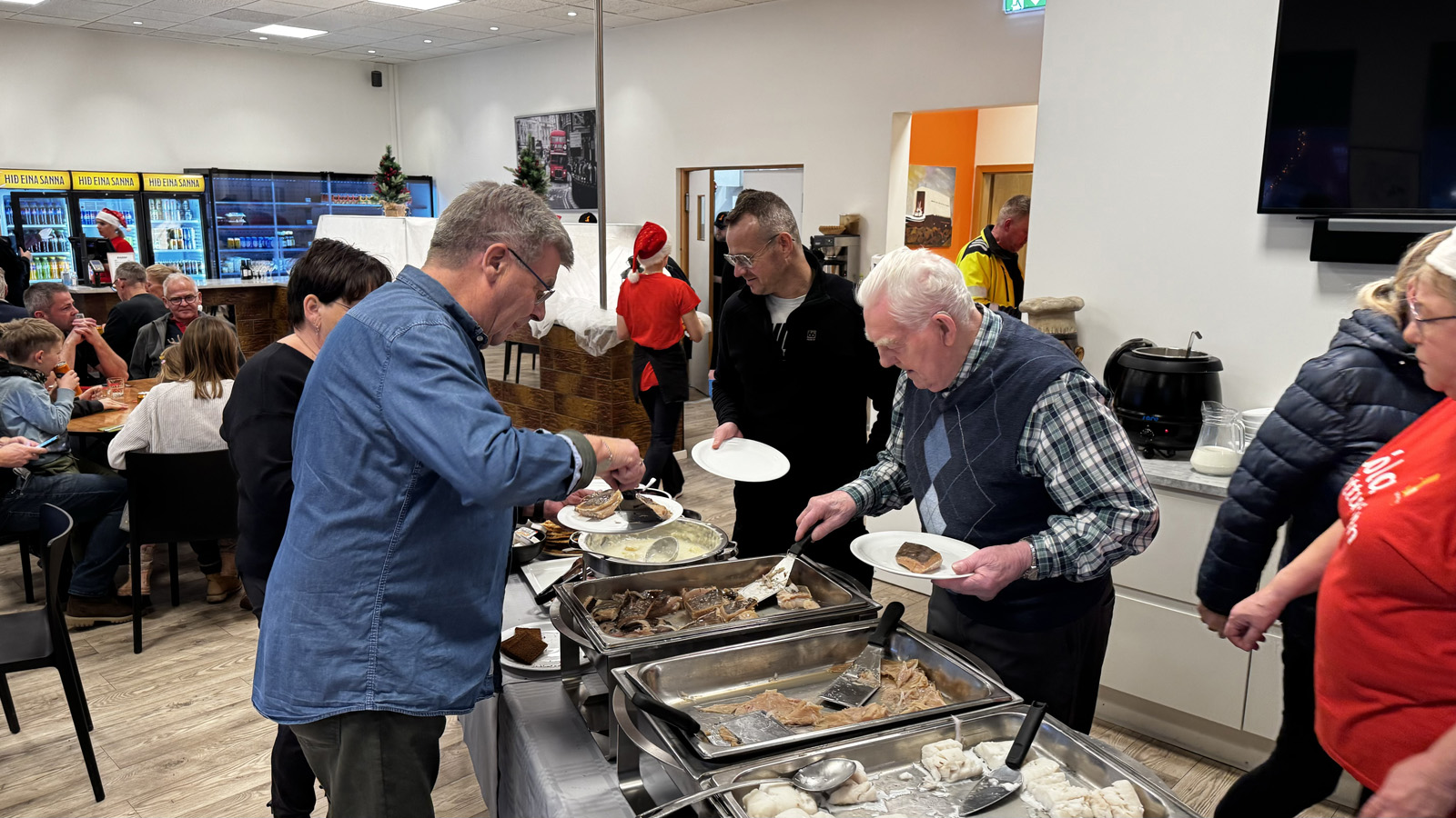 Um þrjúhundruð manns mættu í skötuveislu á Réttinum í Reykjanesbæ í hádeginu á Þorláksmessu. „Þetta eru nærri helmingi fleiri en í fyrra þannig að þetta kom okkur aðeins á óvart. En við vorum tilbúin og þetta gekk vel. Við buðum upp á ljúffenga skötu og fleira góðgæti,“ segir Magnús Þórisson, veitingamaður á Réttinum.
