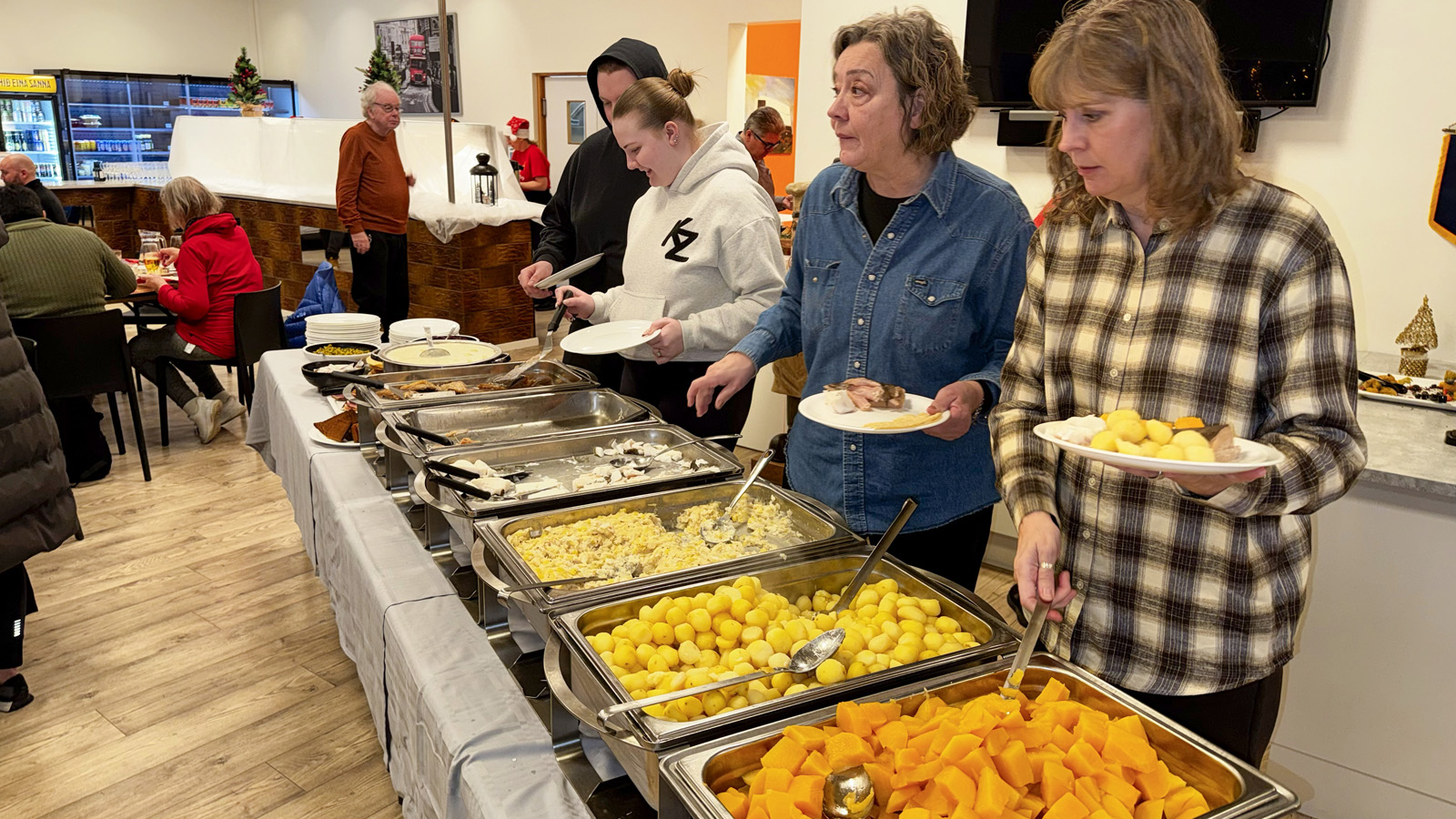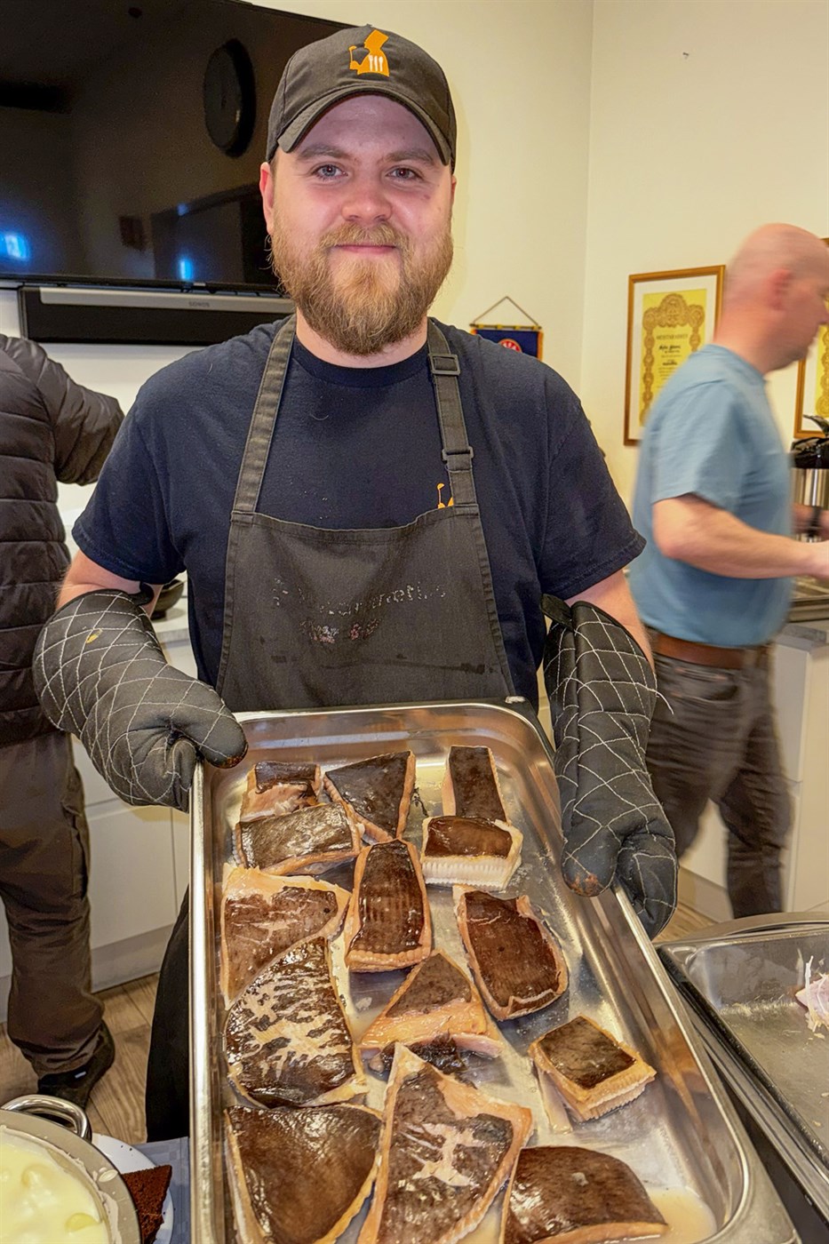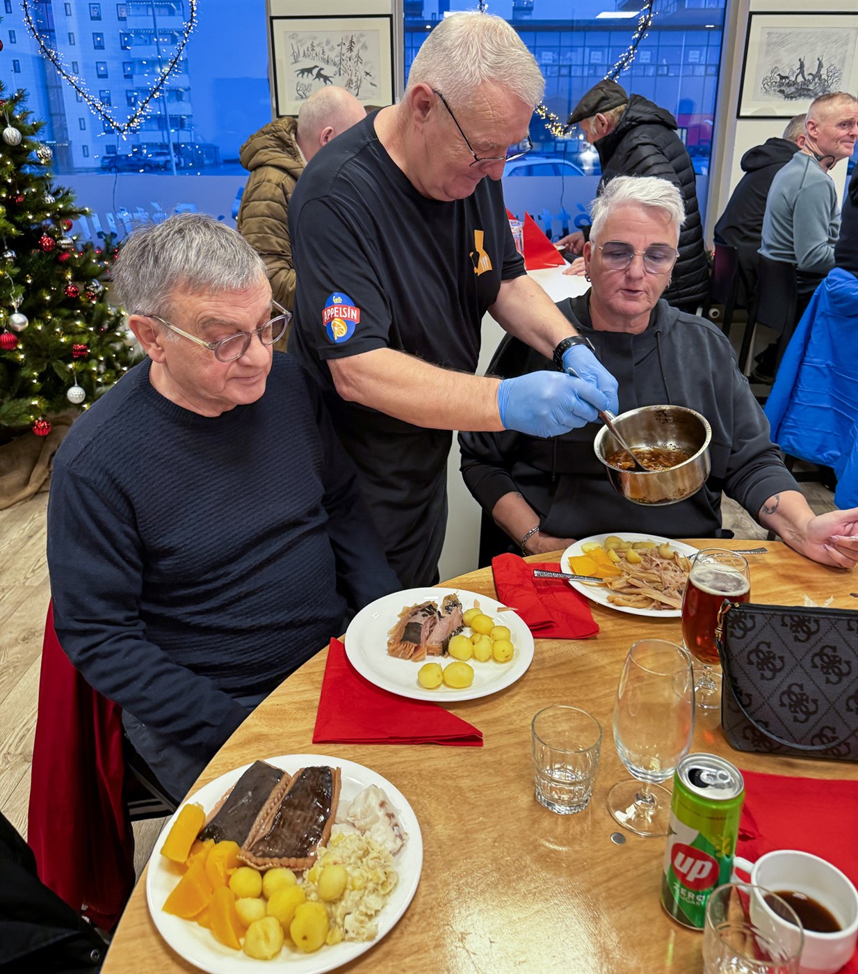 Tíðindamaður Víkurfrétta leit við um hádegisbilið og fékk sér skötu sem bragðaðist vel. Þá var húsfyllir en skötugestir komu frá klukkan hálf tólf til að verða tvö.
