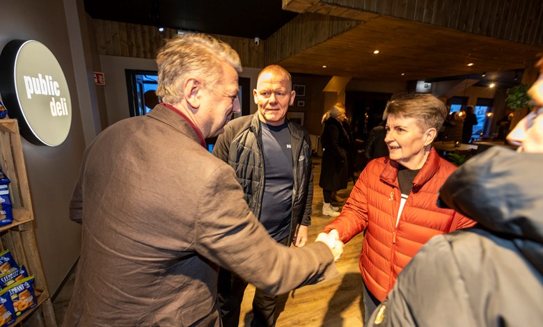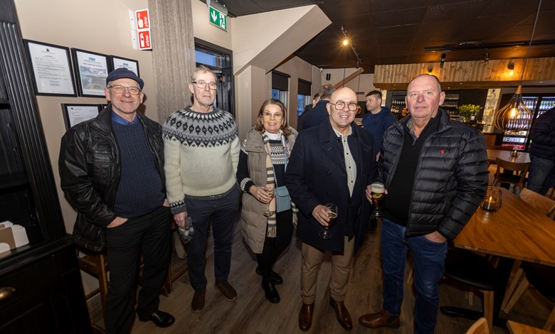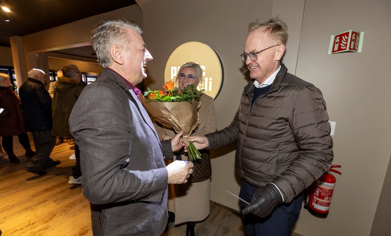 Fjölmargir gestir voru í opnunarhófi sem haldið var 30. janúar, m.a. færði Kjartan Már bæjarstjóri Kidda Skúla blómvönd.